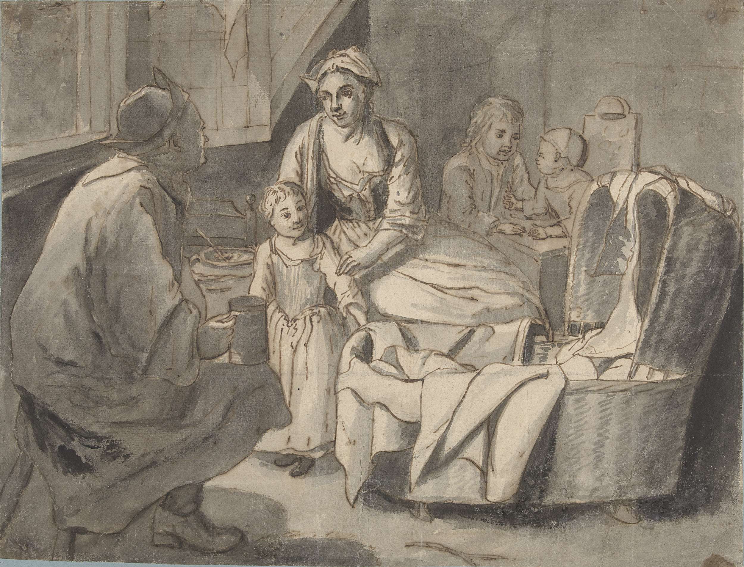Interieur met een familie met kinderen