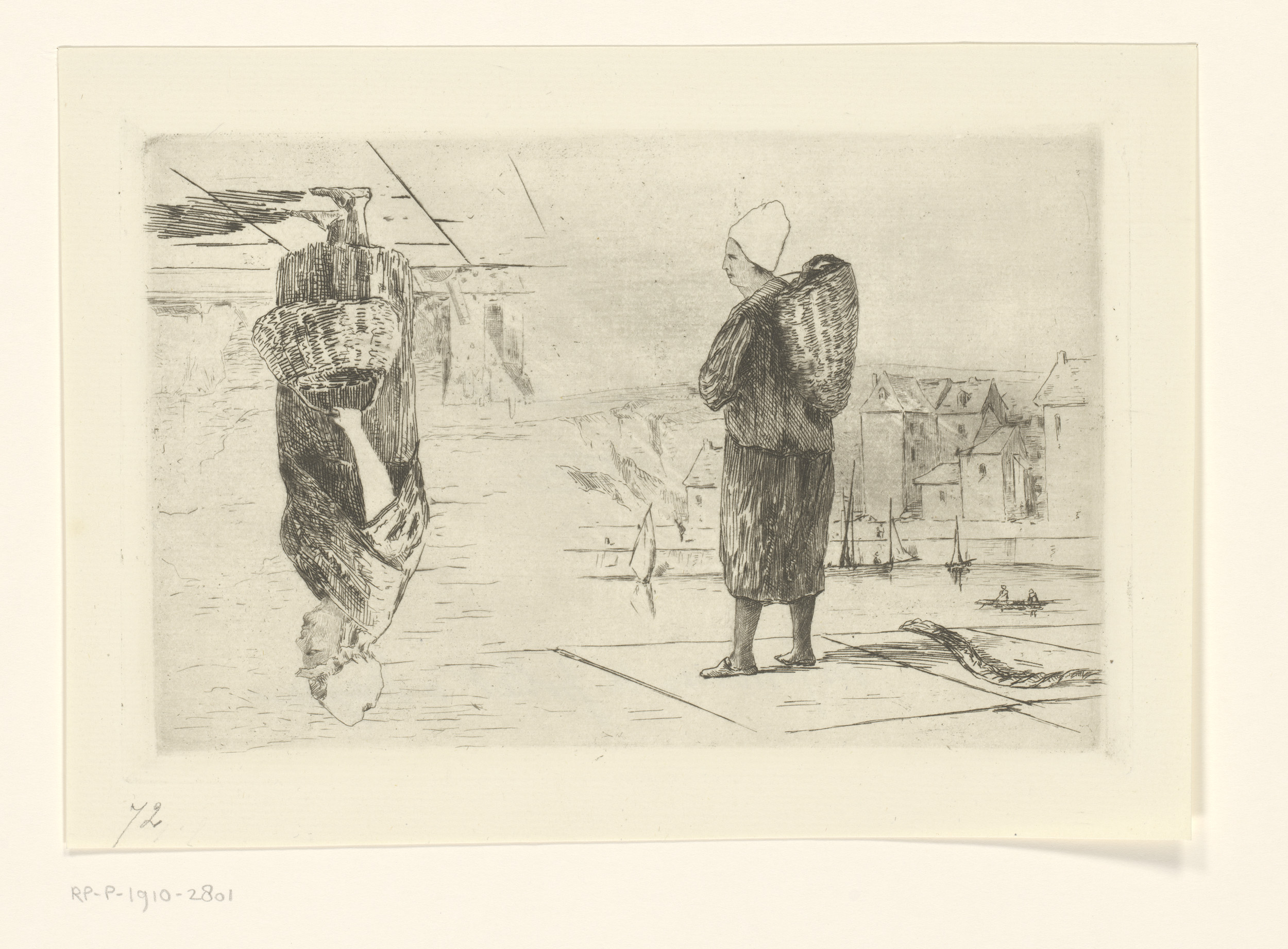 Twee voorstellingen van vrouwen met manden