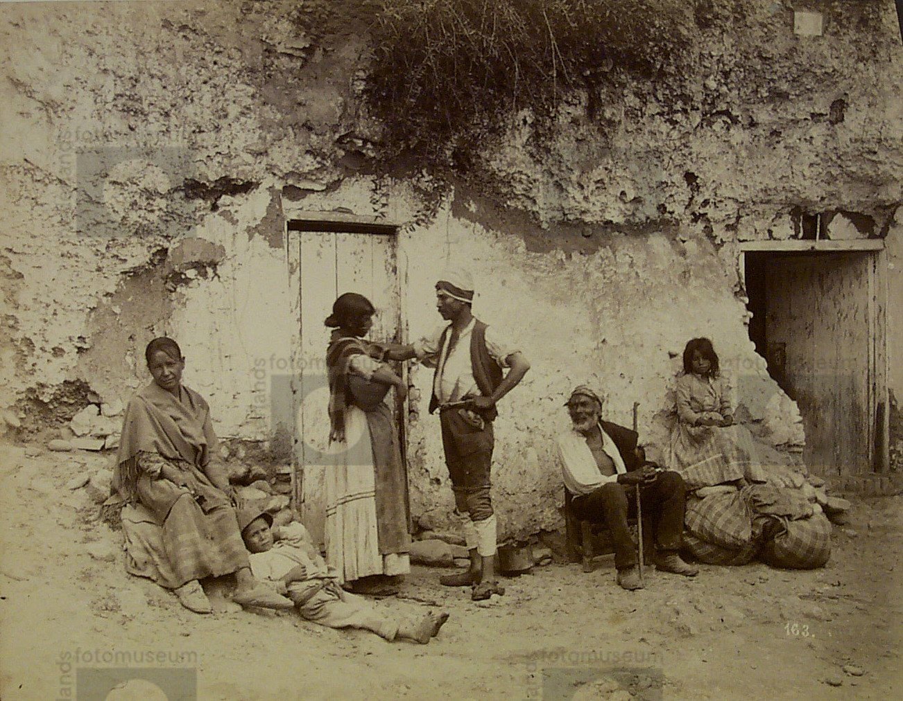 Straatgezicht met groep zigeuners, Granada, Spanje (...