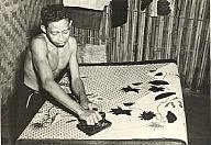 Batikster bij het inbrengen van de kleurstof, Jawa, ...