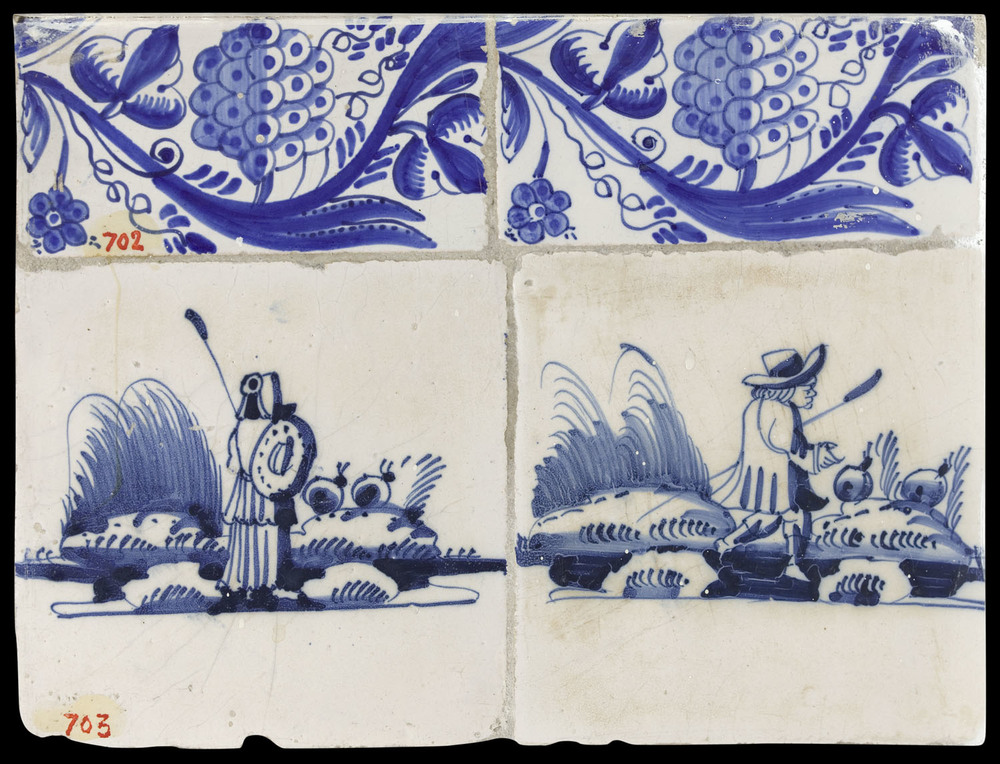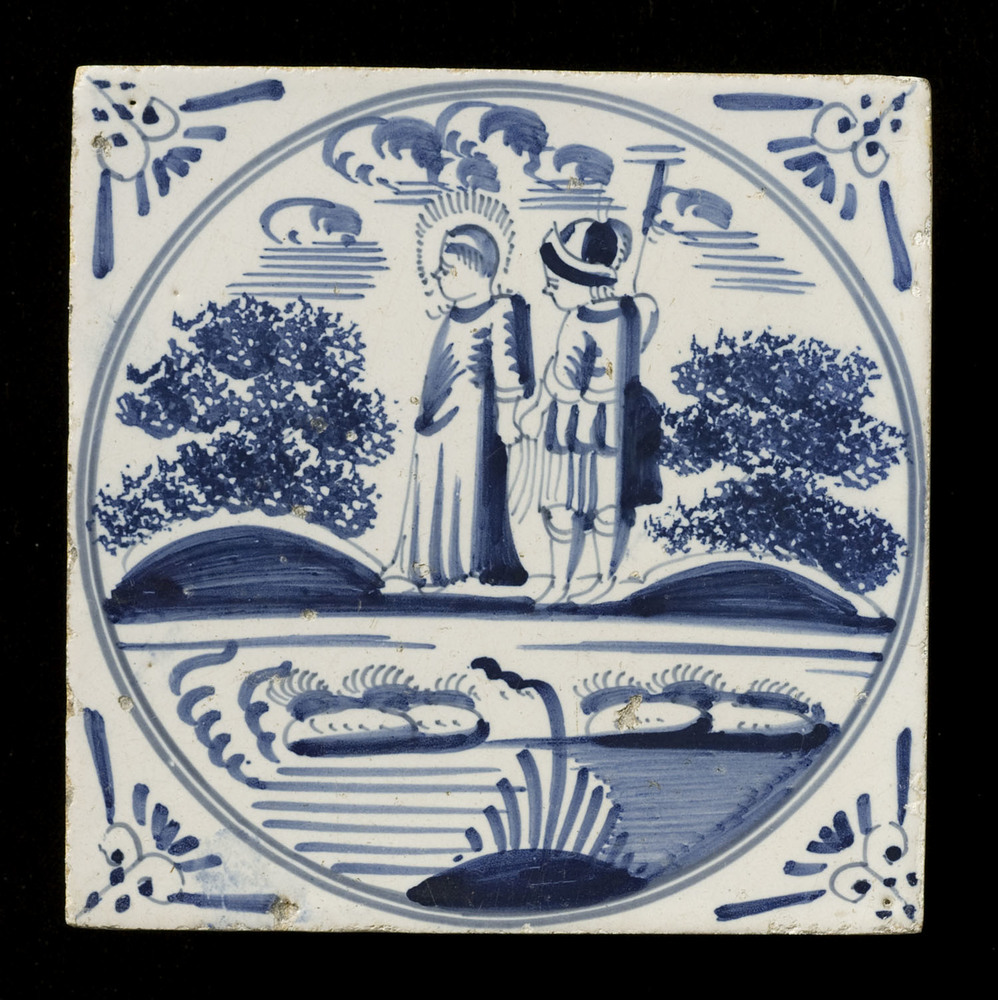 tegel van keramiek met tinglazuur, voorstellende: De...