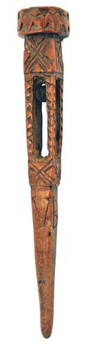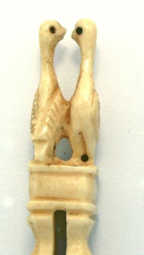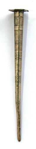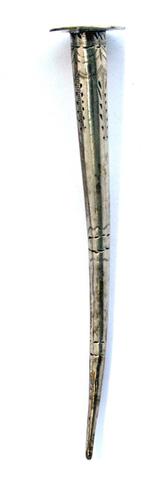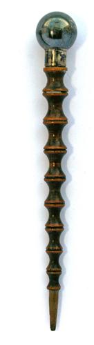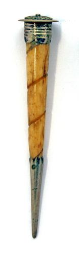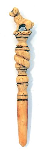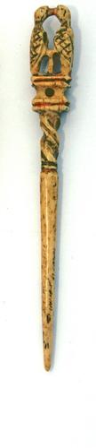 Pijpenwroeter van been met rechte priemvorm bekroond...