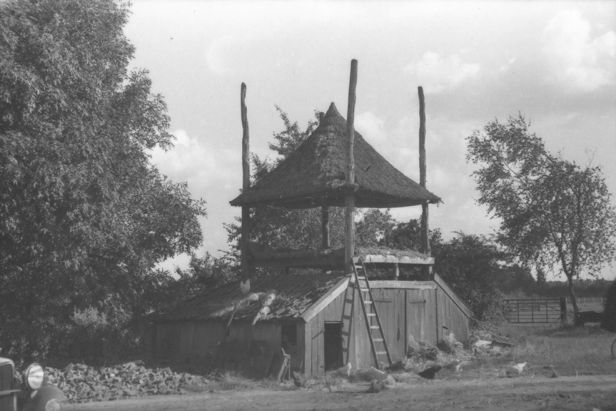 Gebint van een schuur, Usquert, 1938 (zwart-wit foto)