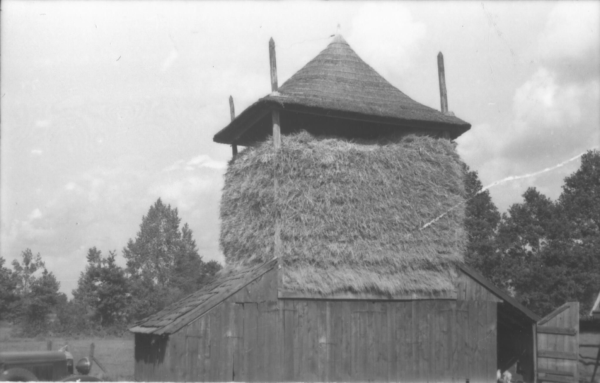 Dak van een hooiberg, Laren, 1938 (zwart-wit foto)