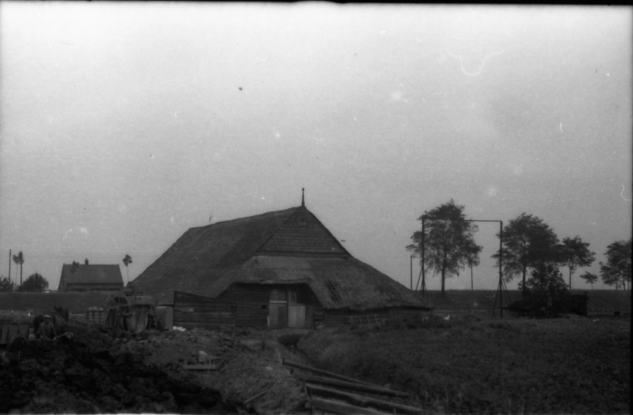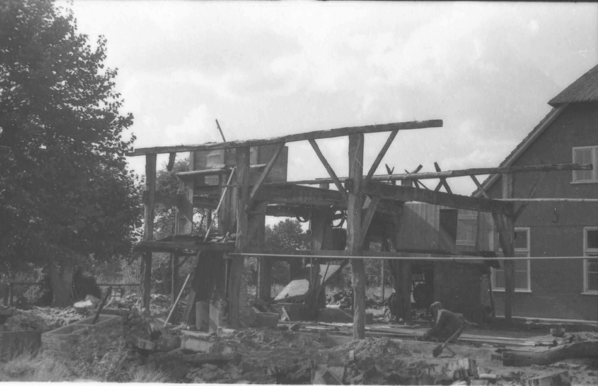 Afbraak van een boerderij, Laren, 1938 (zwart-wit ne...