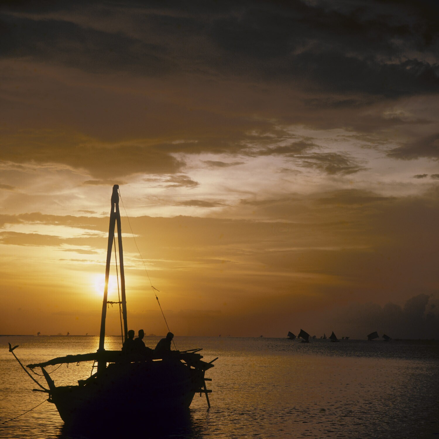 Makassaarse vissersprauw in de baai van Makassar, Su...