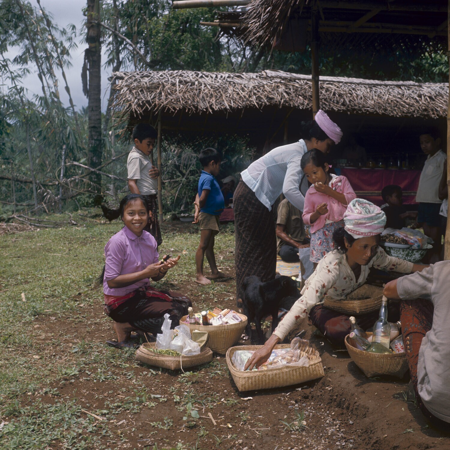 Verkoopster van versnaperingen bij een hanengevecht ...