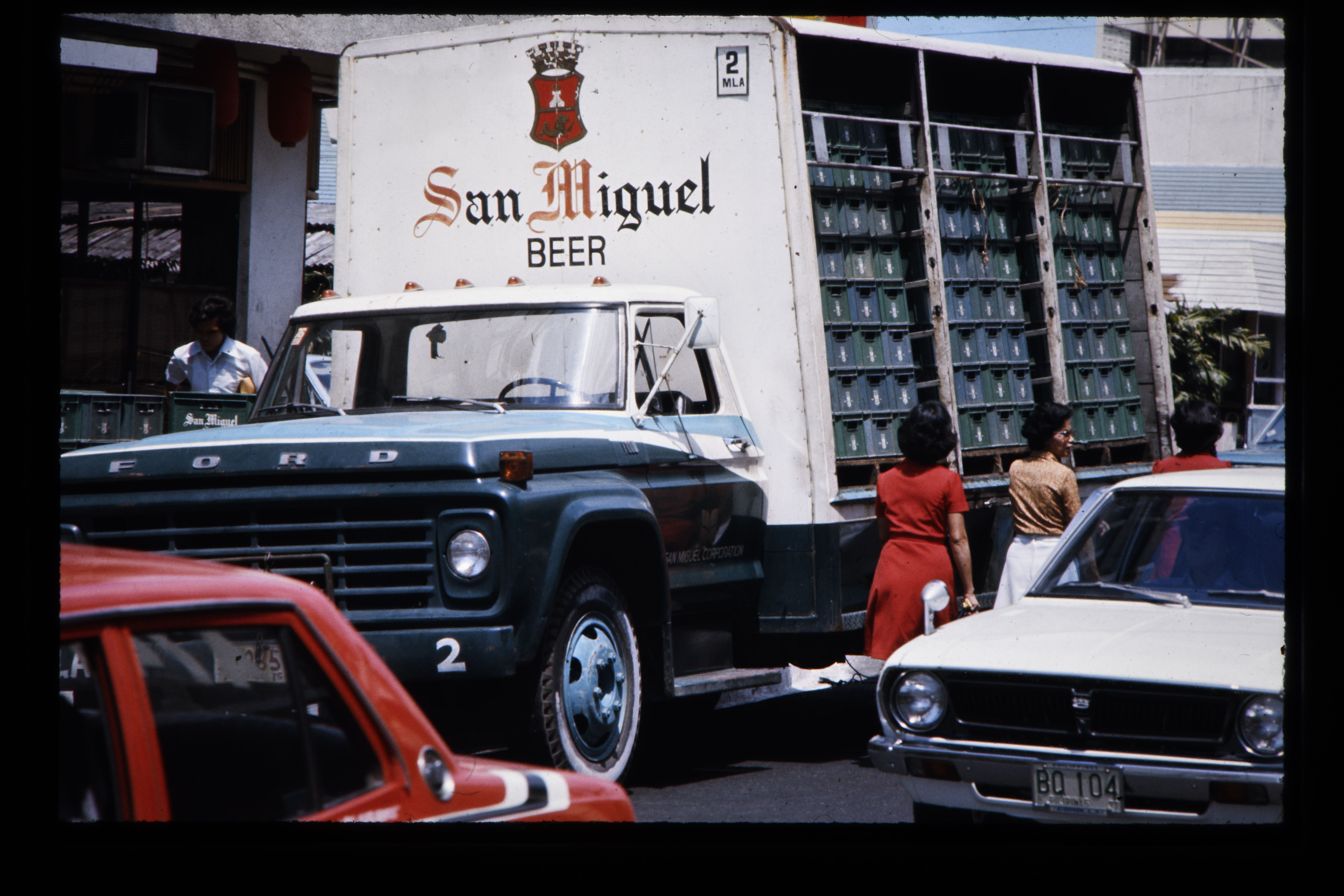'Vrachtwagen van de San Miguel brouwerij levert krat...