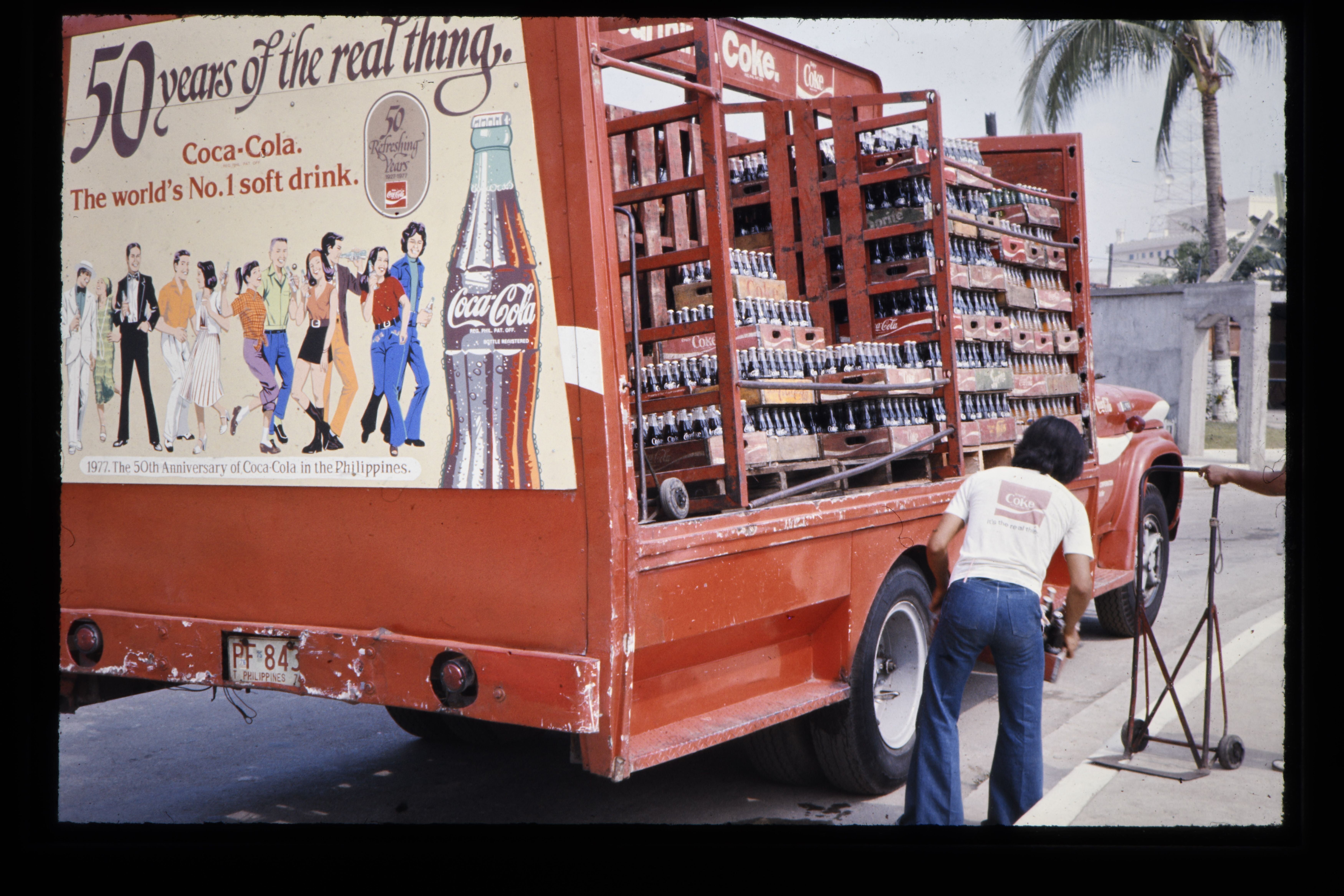 'Coca-kolonisatie, vrachtwagen met Coca-Cola en recl...
