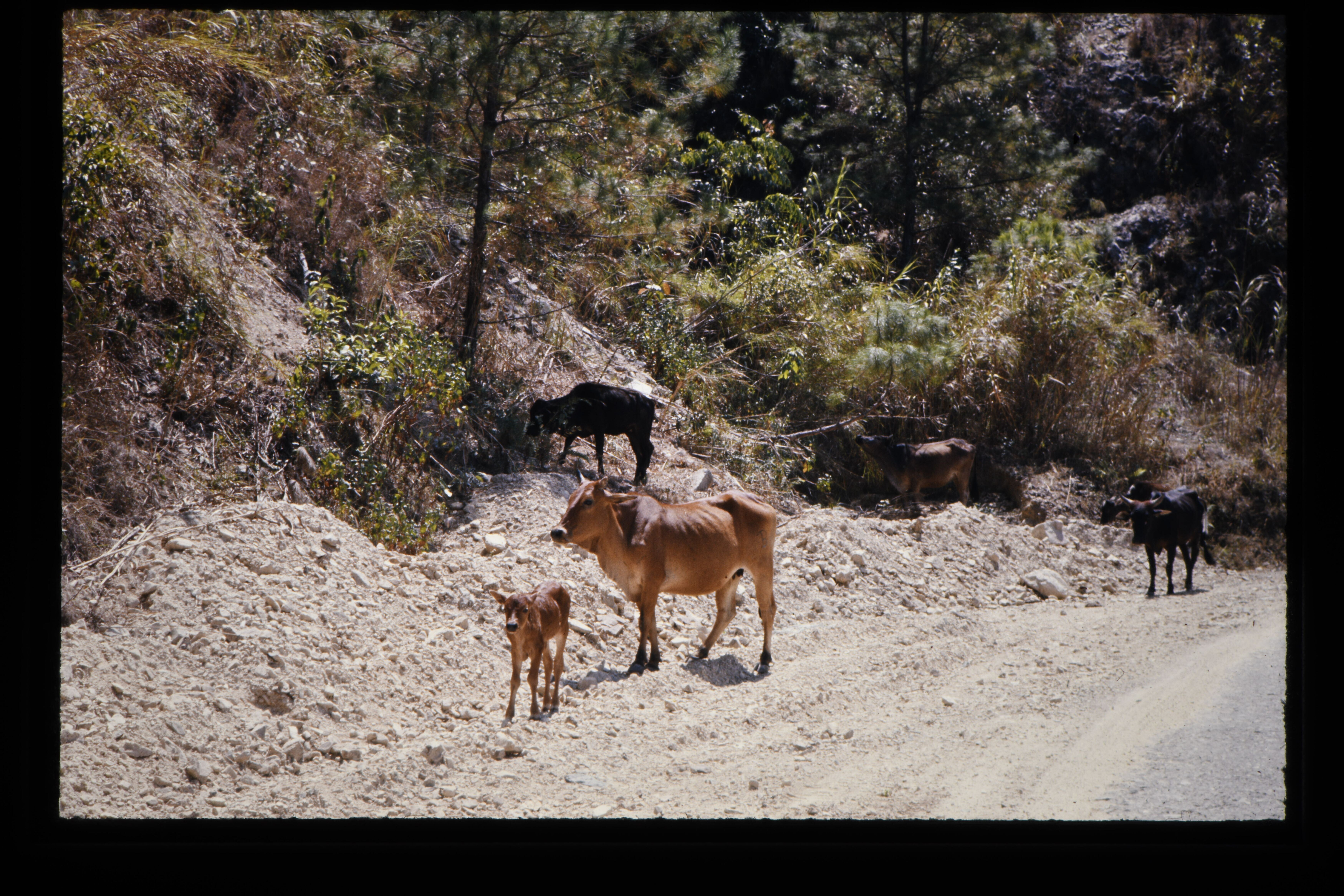'Grazend vee langs de weg van Baguio naar Ambuklas, ...