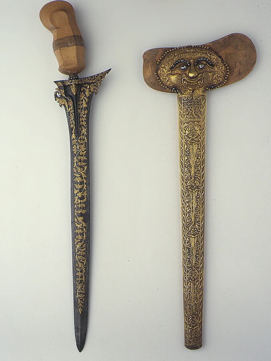 Kris with golden sheath, surmounted by a demon's hea...