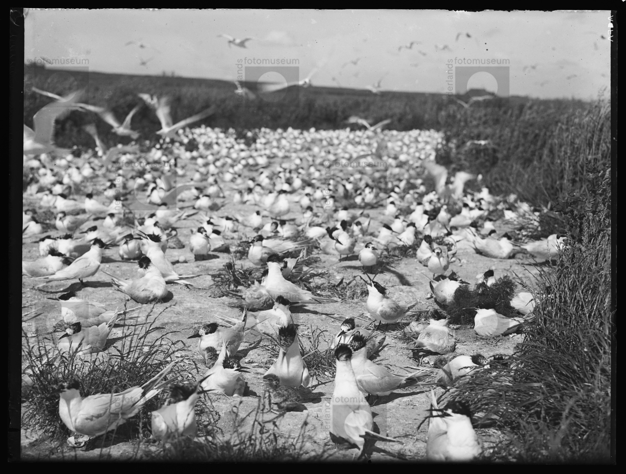 Broedkolonie van Grote sterns, met jongen, Mokkebank...