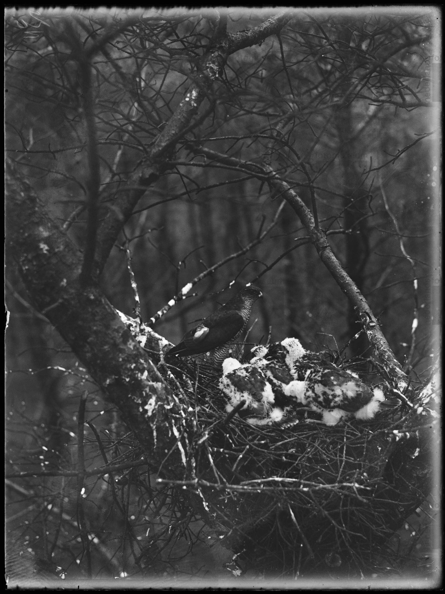 Sperwer op nest met jongen, De Steeg (1913, Reproduc...