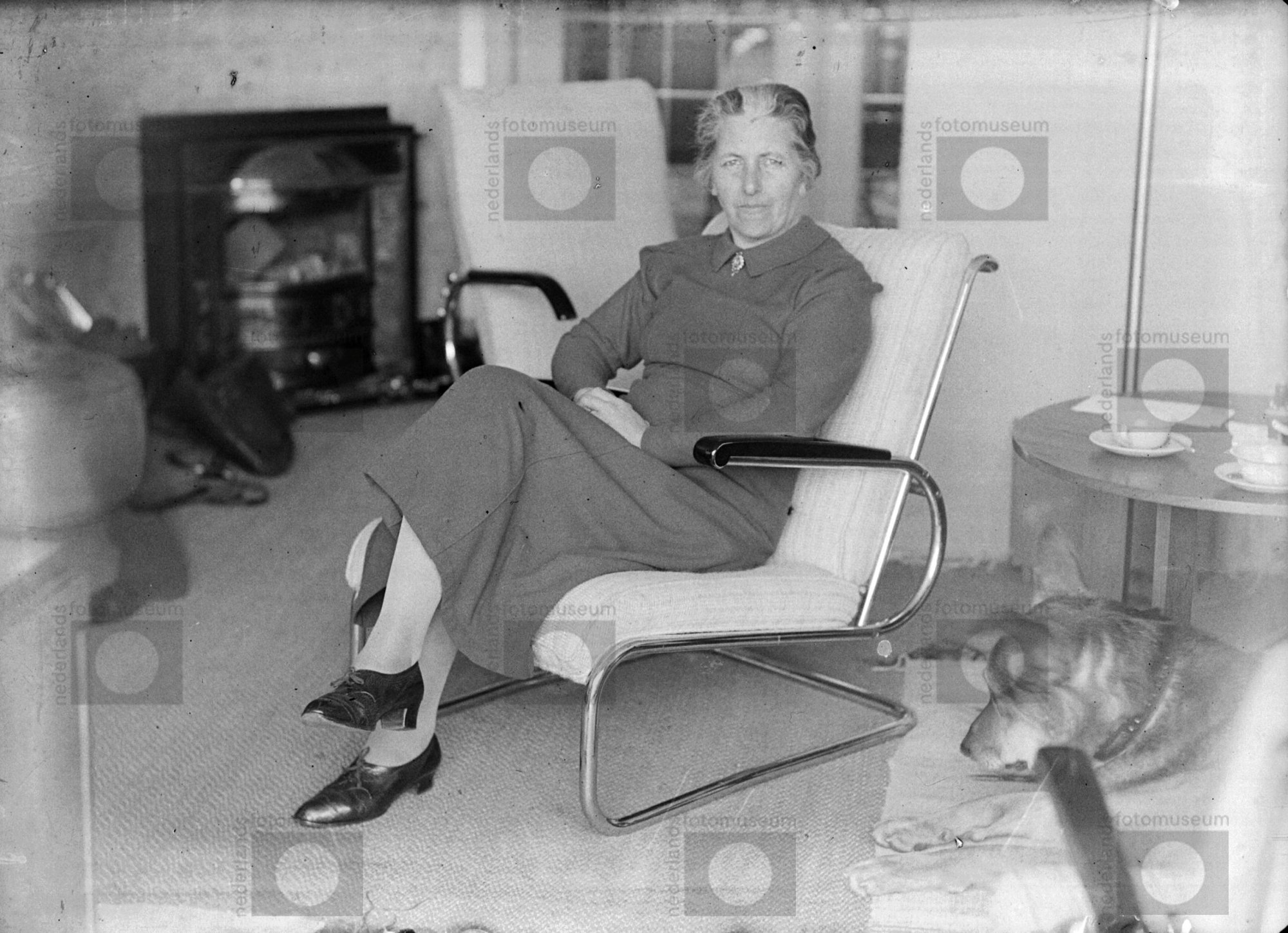Mevrouw van der Horst, zittend op buisframe leunstoe...