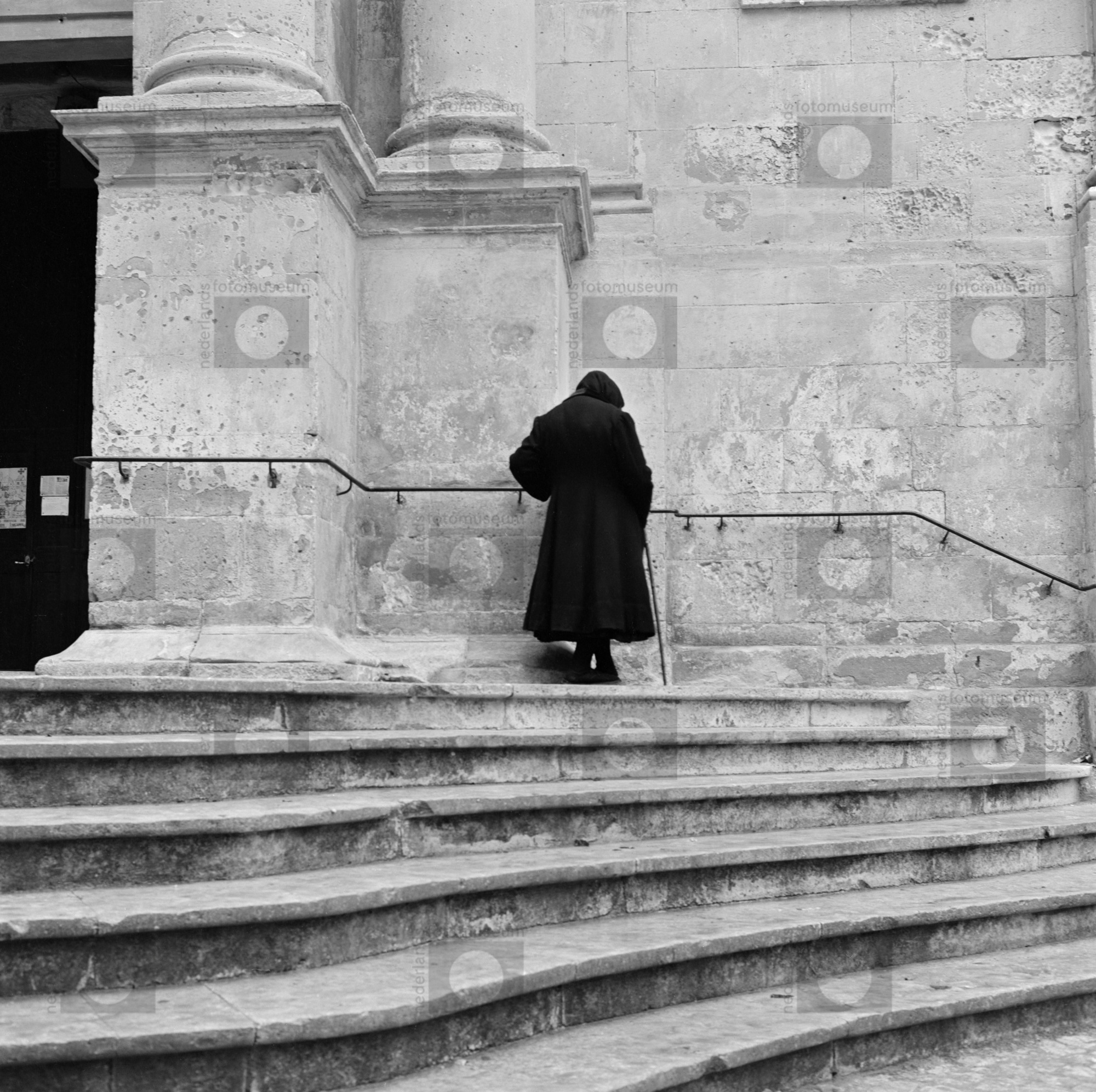 Vrouw in rouwdracht met poffer-muts, Brabant (1950-1...