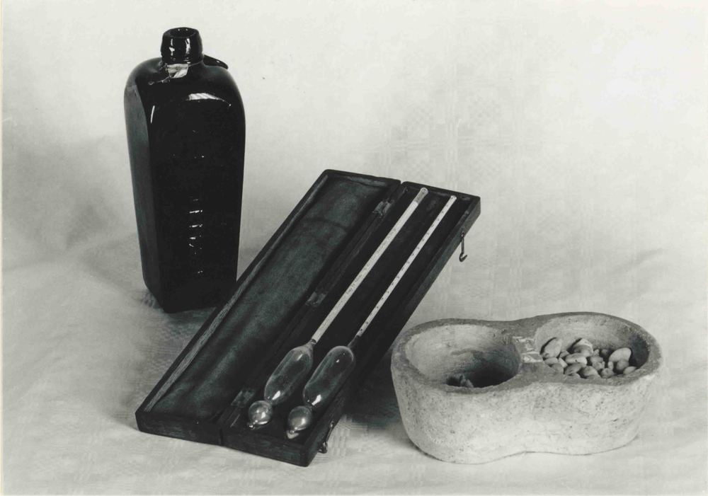 Foto, voorstellende de eerste fles, telbakje en alco...