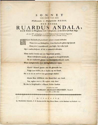 Sonnet ter ere van de inwijding van de heer R. Andal...