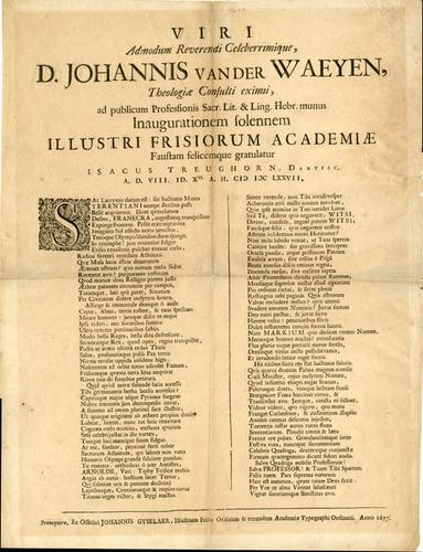Herdenkingsgeschrift in latijn met betrekking tot he...
