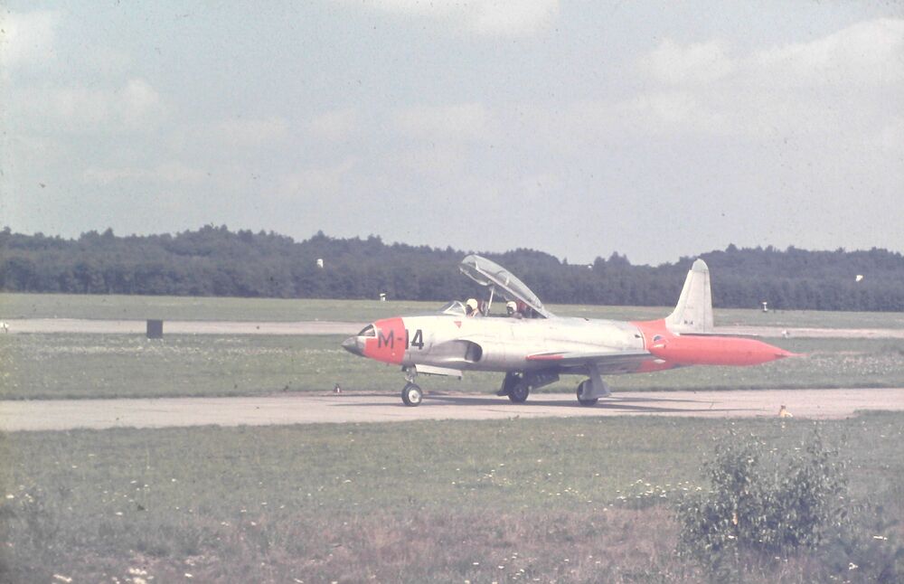 Lockheed T-33 Koninklijke Luchtmacht M-14 op de rolb...