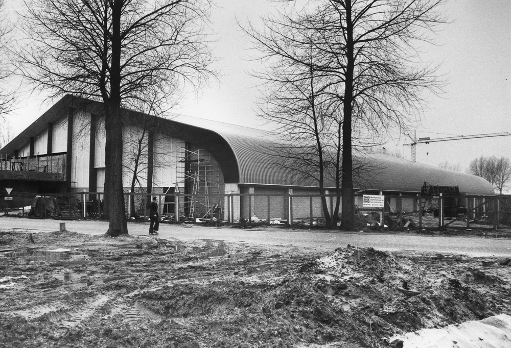 Bouw van ijsstadion De Harder aan de Flevoweg