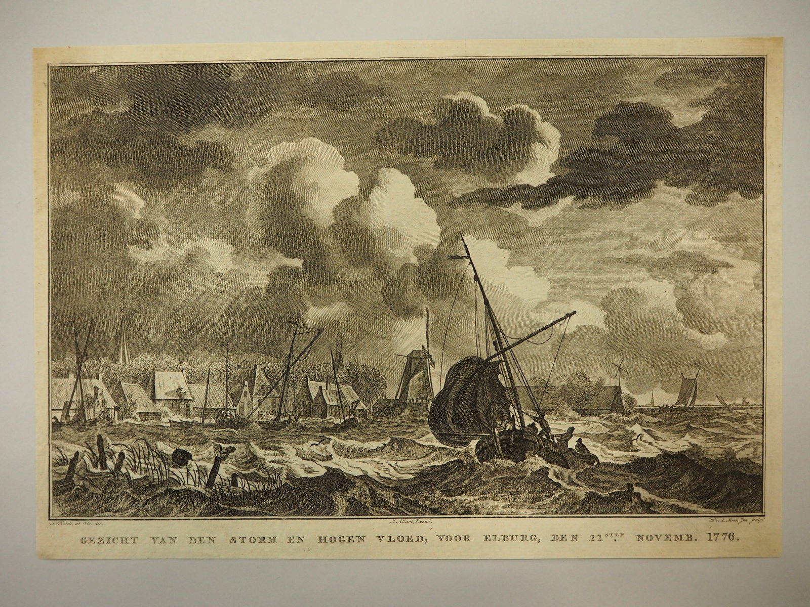 Gezicht van den storm en hogen vloed, voor Elburg, d...