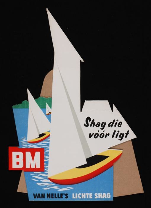 Reclamebord Van Nelle's lichte shag "BM" met zeilboot