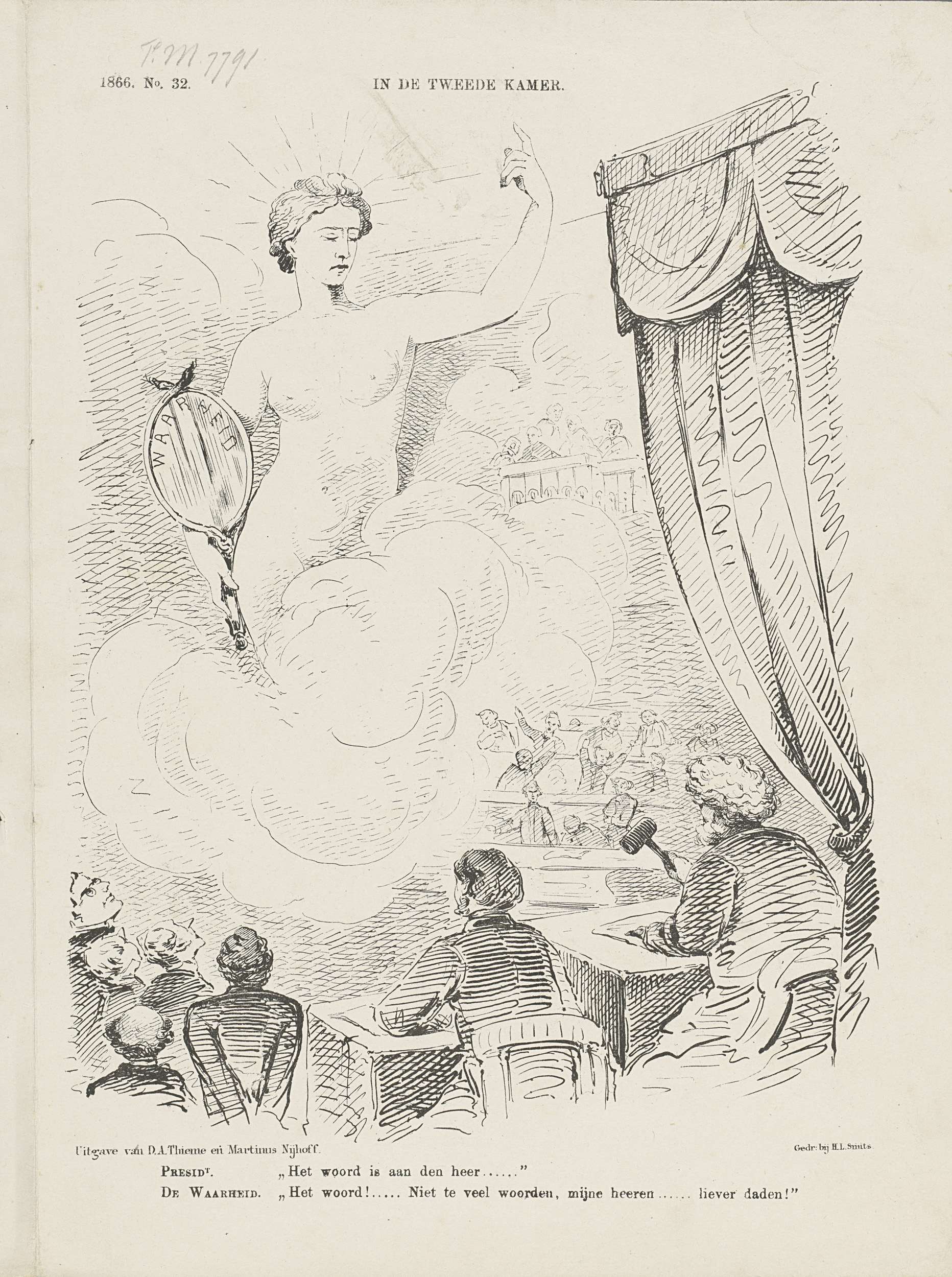 Spotprent met de Waarheid in de Tweede Kamer, 1866
