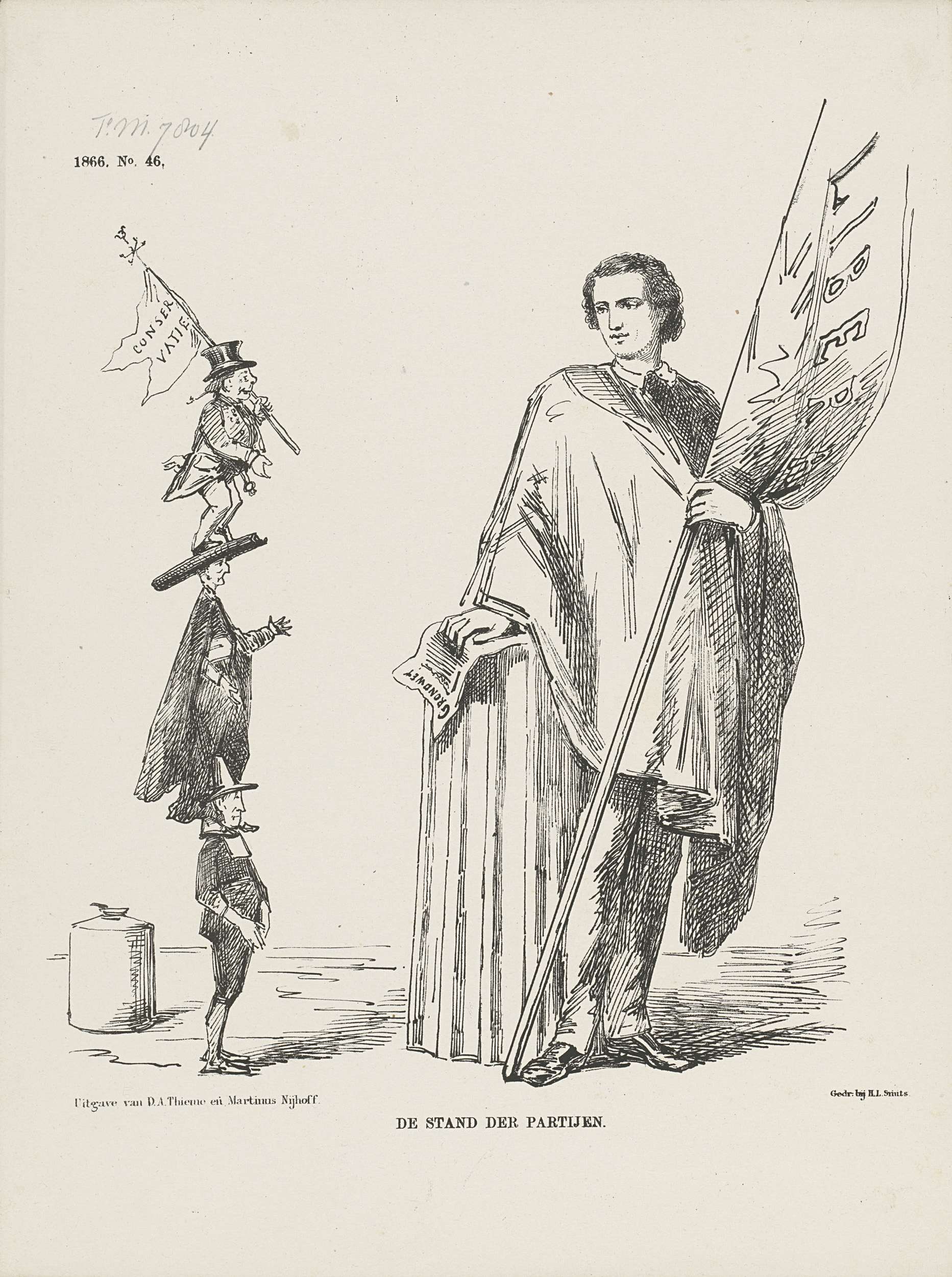 Spotprent op verhouding tussen de partijen, 1866