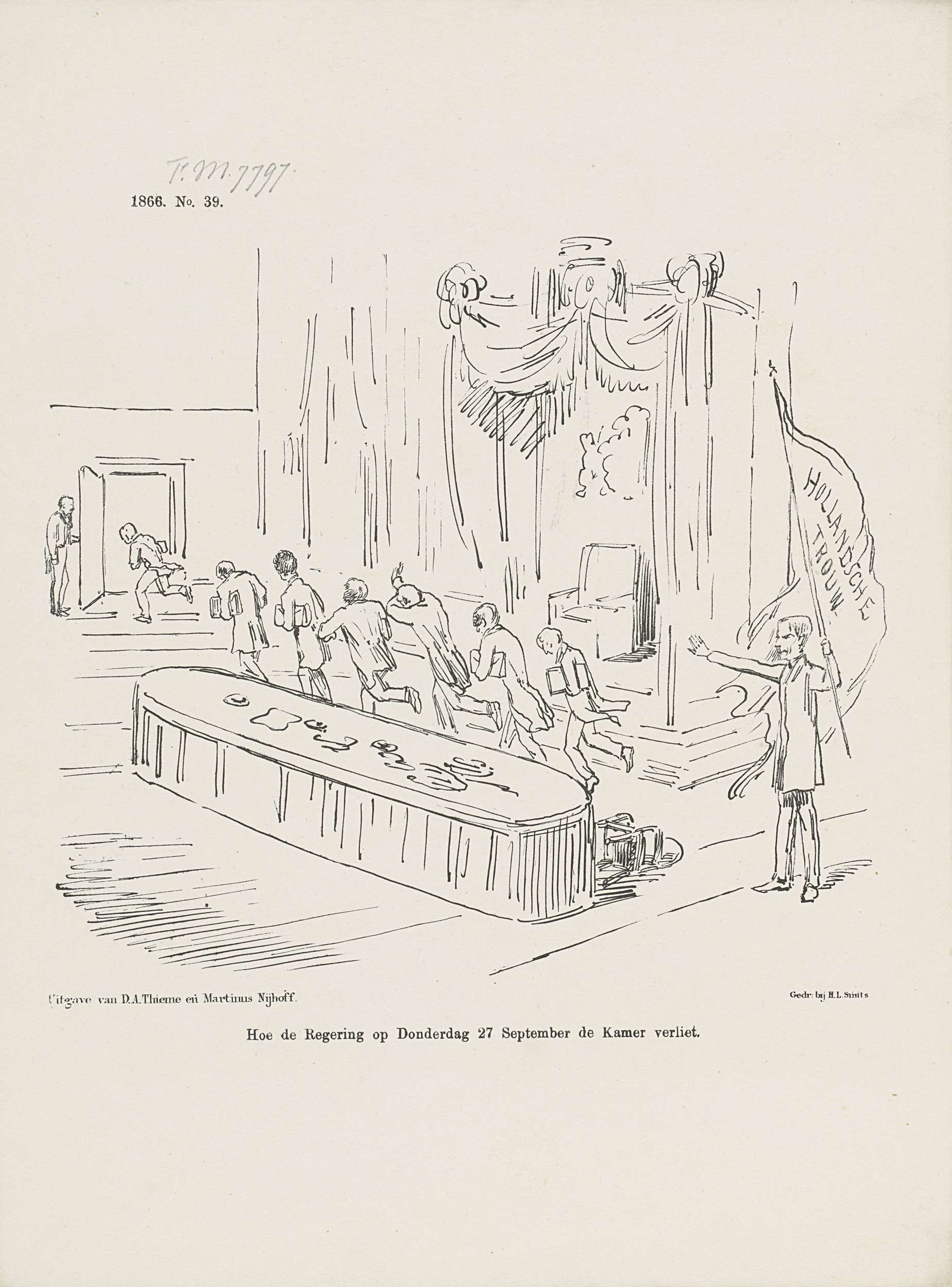 Spotprent op de ontbinding van de Kamers, 1866