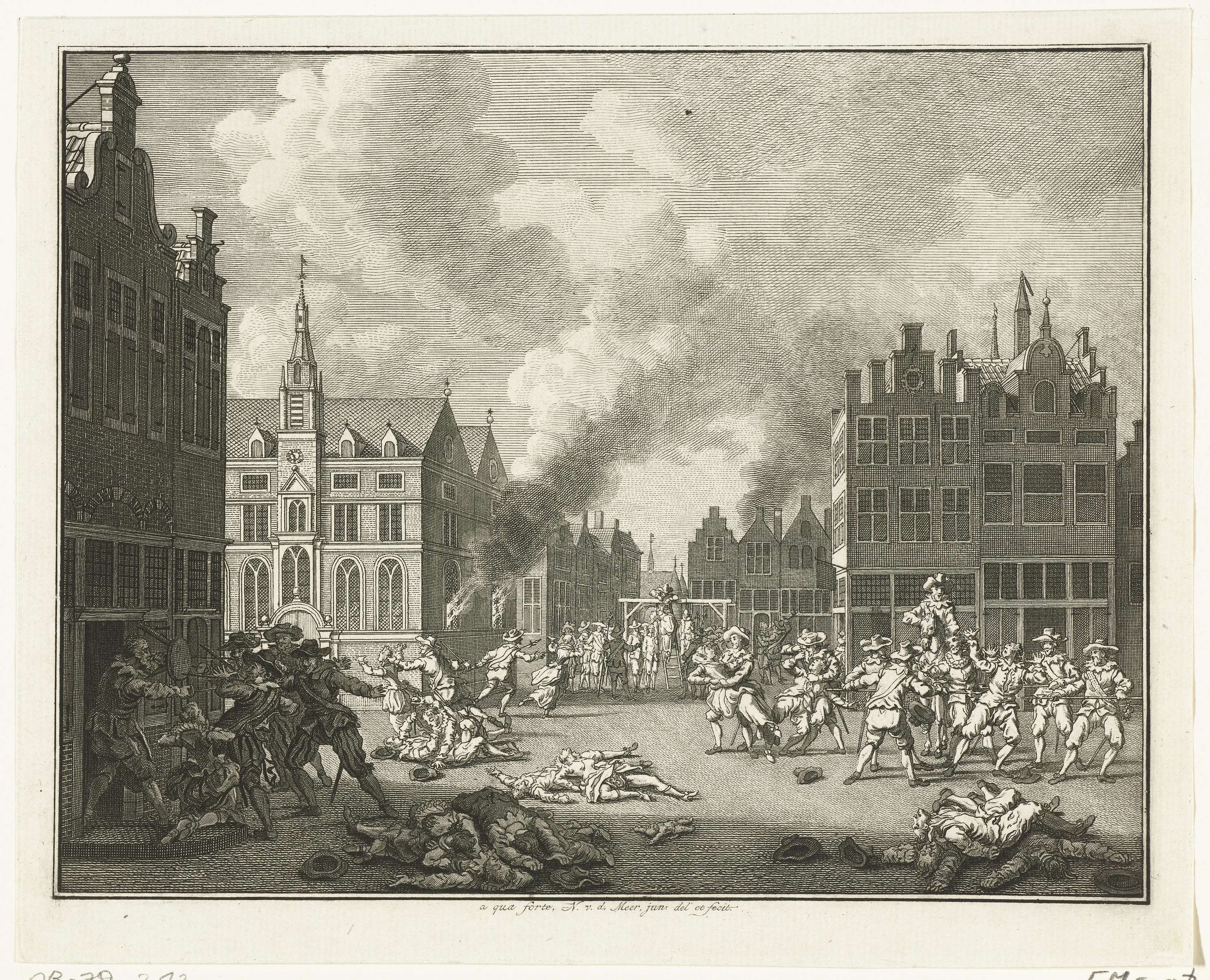 Spaanse soldaten beschieten het beeld van Erasmus, 1572