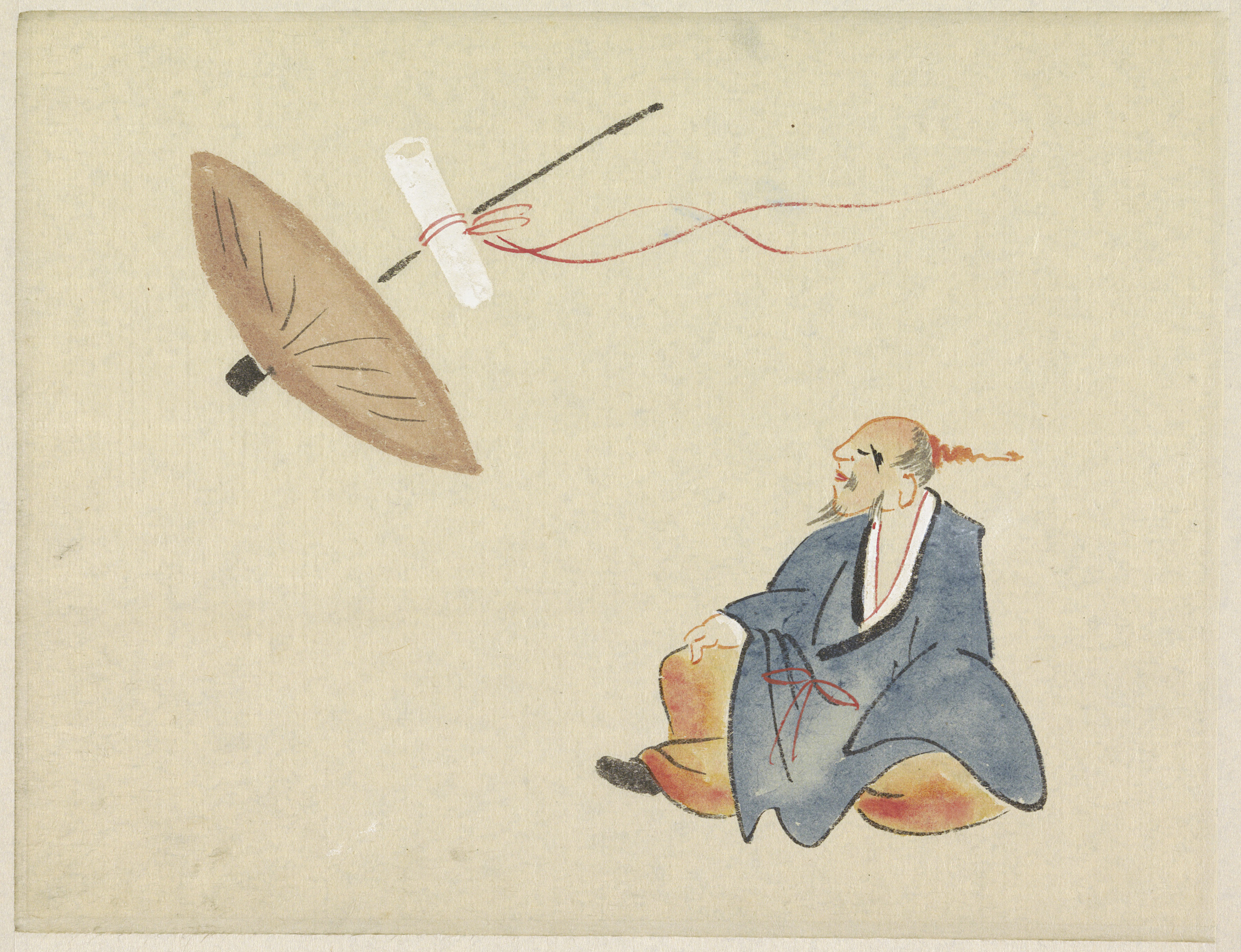 Zittende man bij wegvliegende parasol met brief