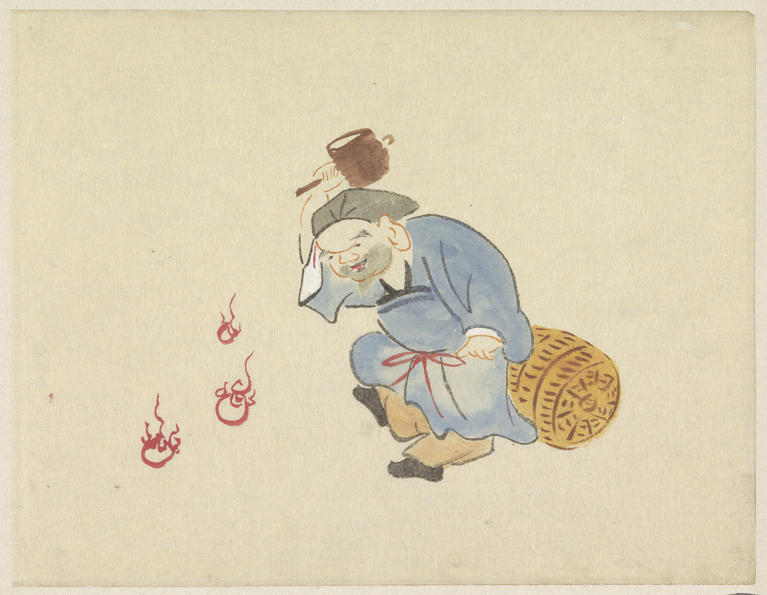 Daikoku met hamer bij vlammen