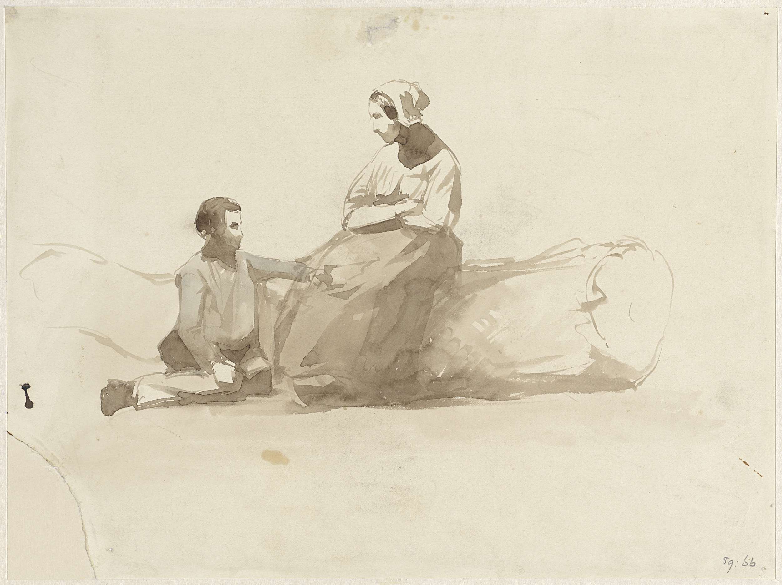 Twee schetsen van zittende vrouwen