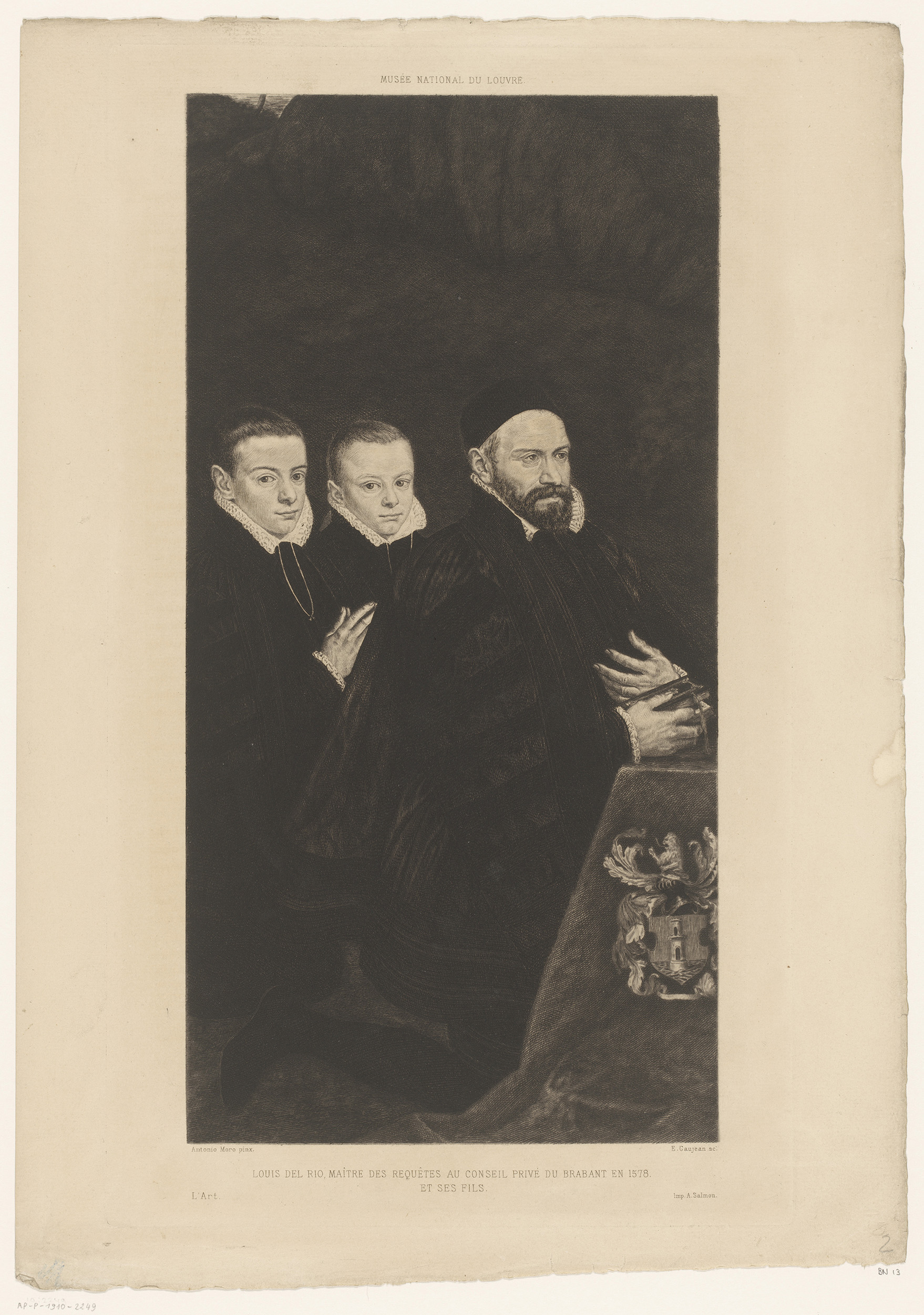 Portret van Antonio del Rio met zijn twee zonen
