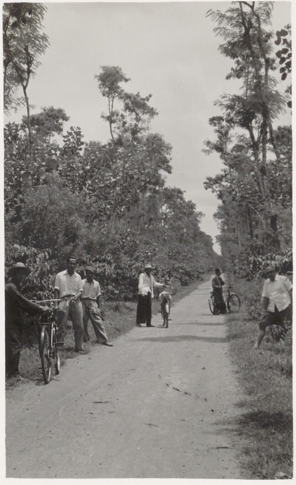 Koffiestruiken langs een weg met fietsers op de koff...