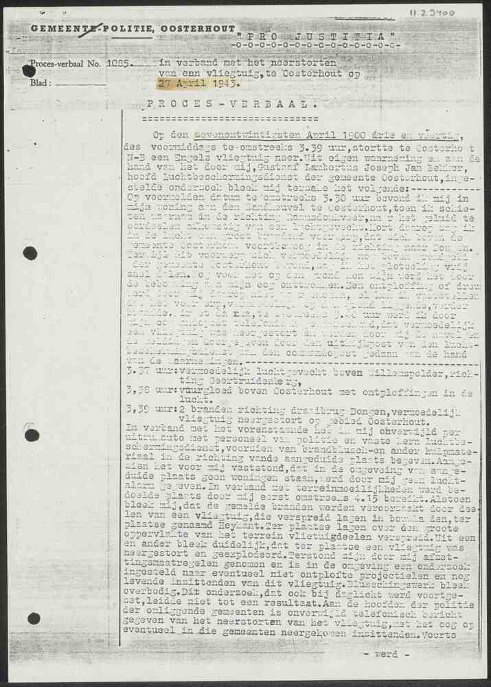 Proces-Verbaal No. 1085 Gemeente-Politie Oosterhout ...