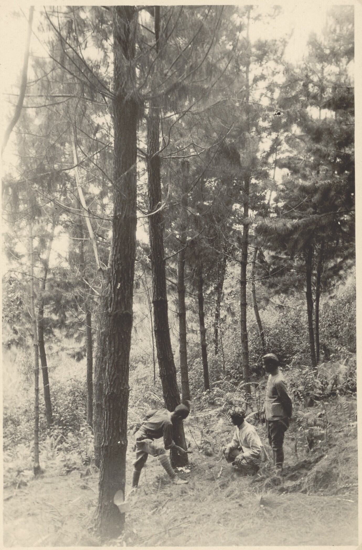 Houtvesters poseren bij een wagon, bosdistrict Zuid-...