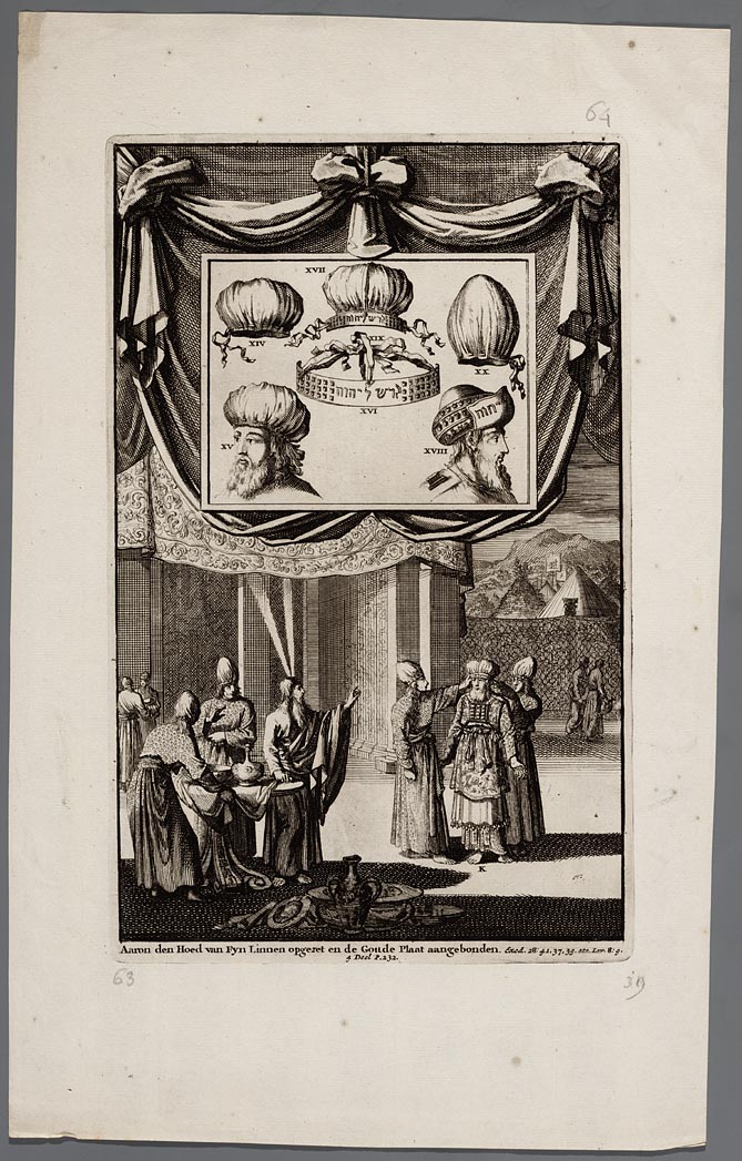 Aaron den hoed van fyn linnen opgezet en de goude pl...