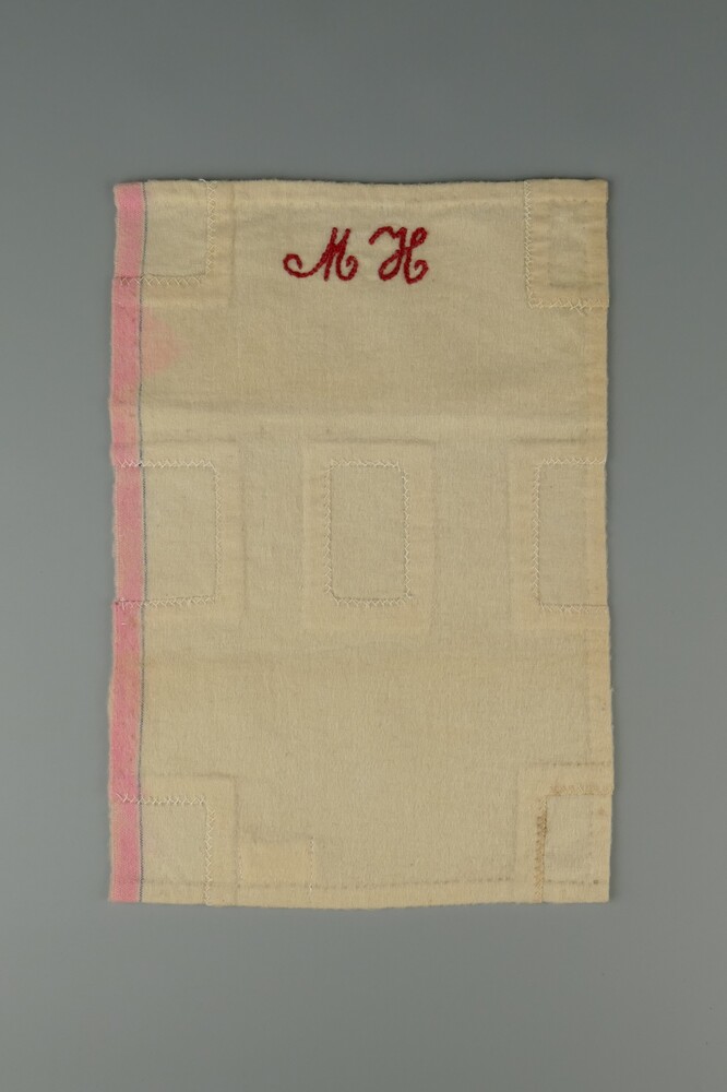 katoenen hoekenlap genaaid door M. v. Hof in 1915
