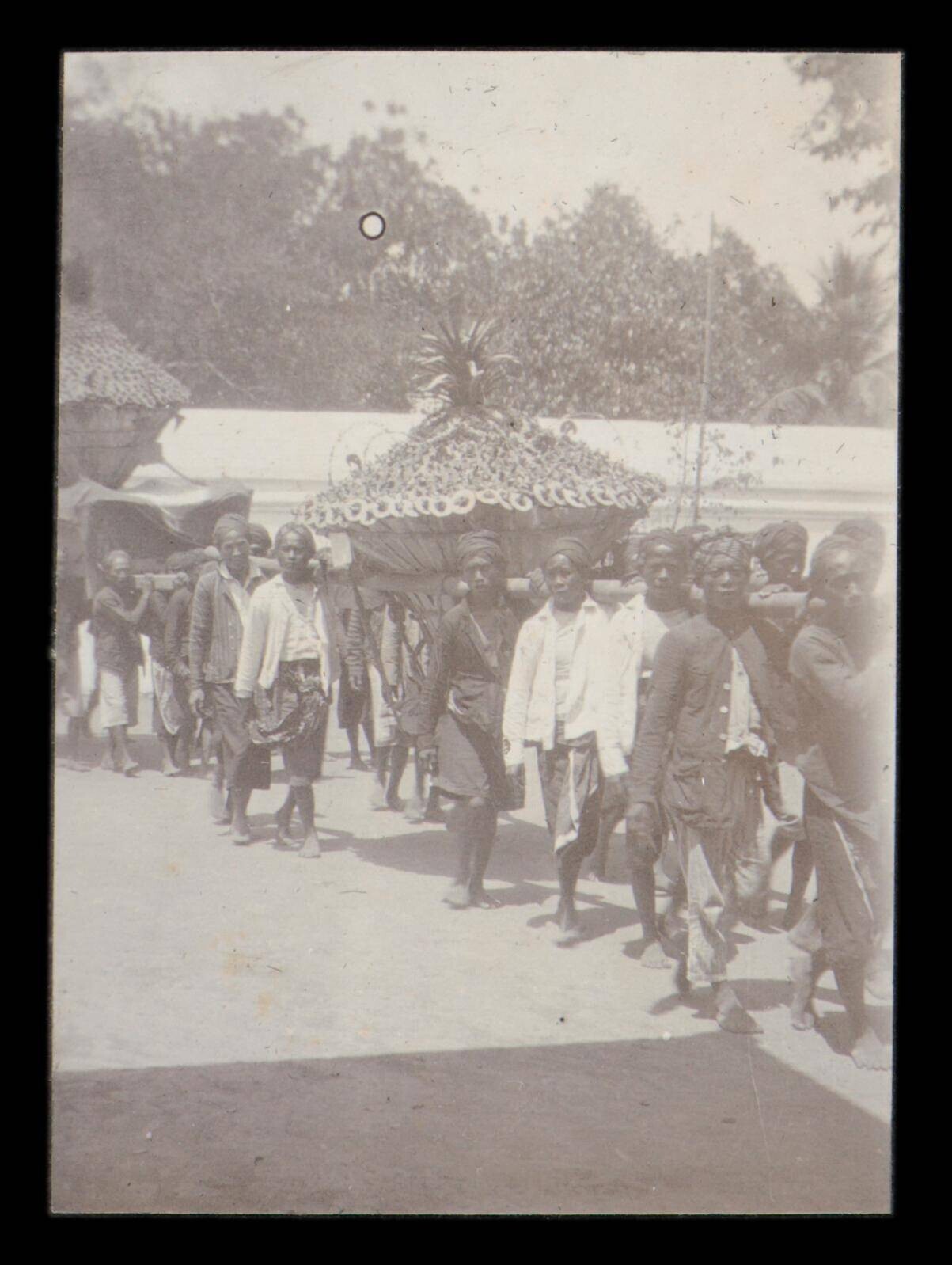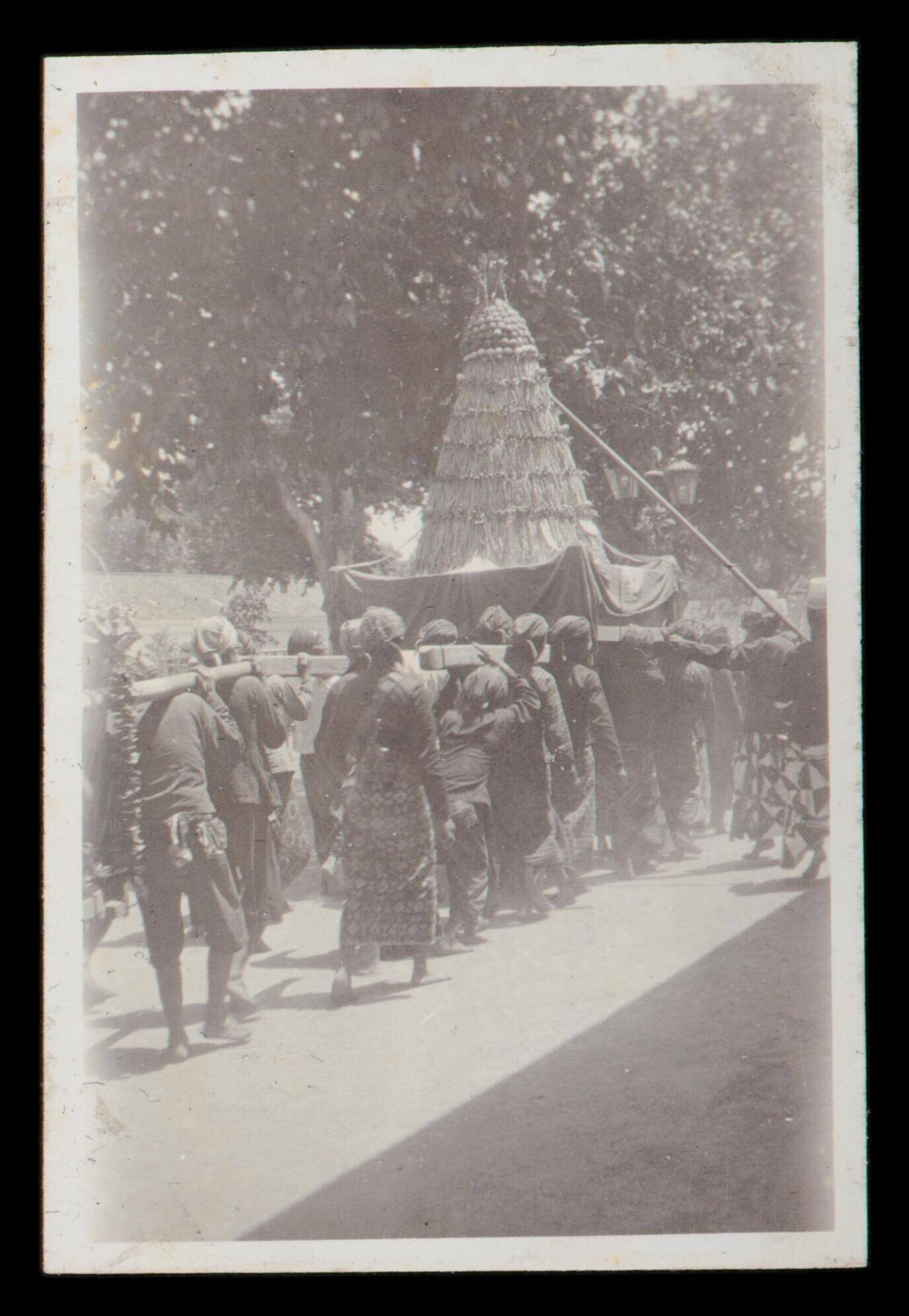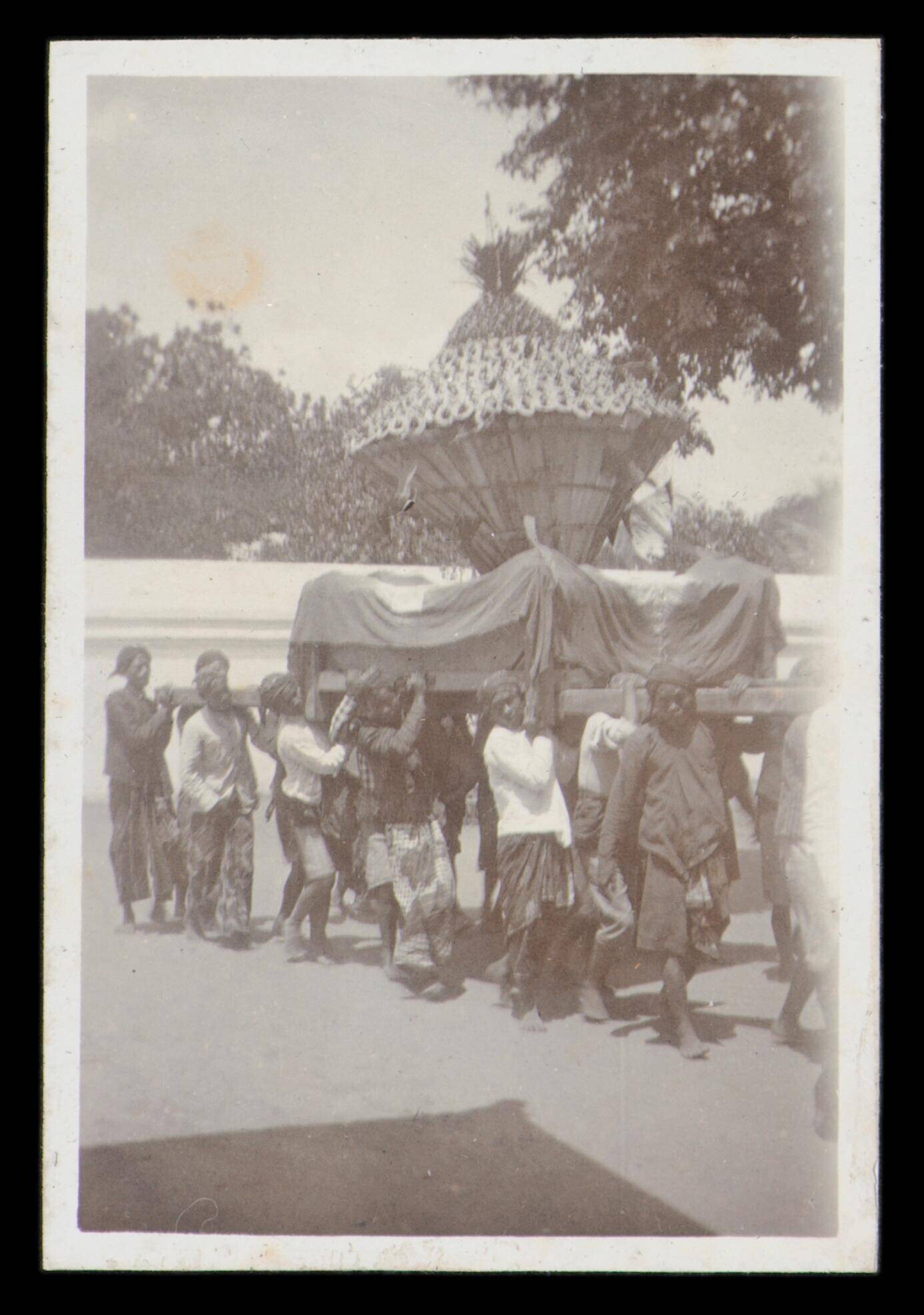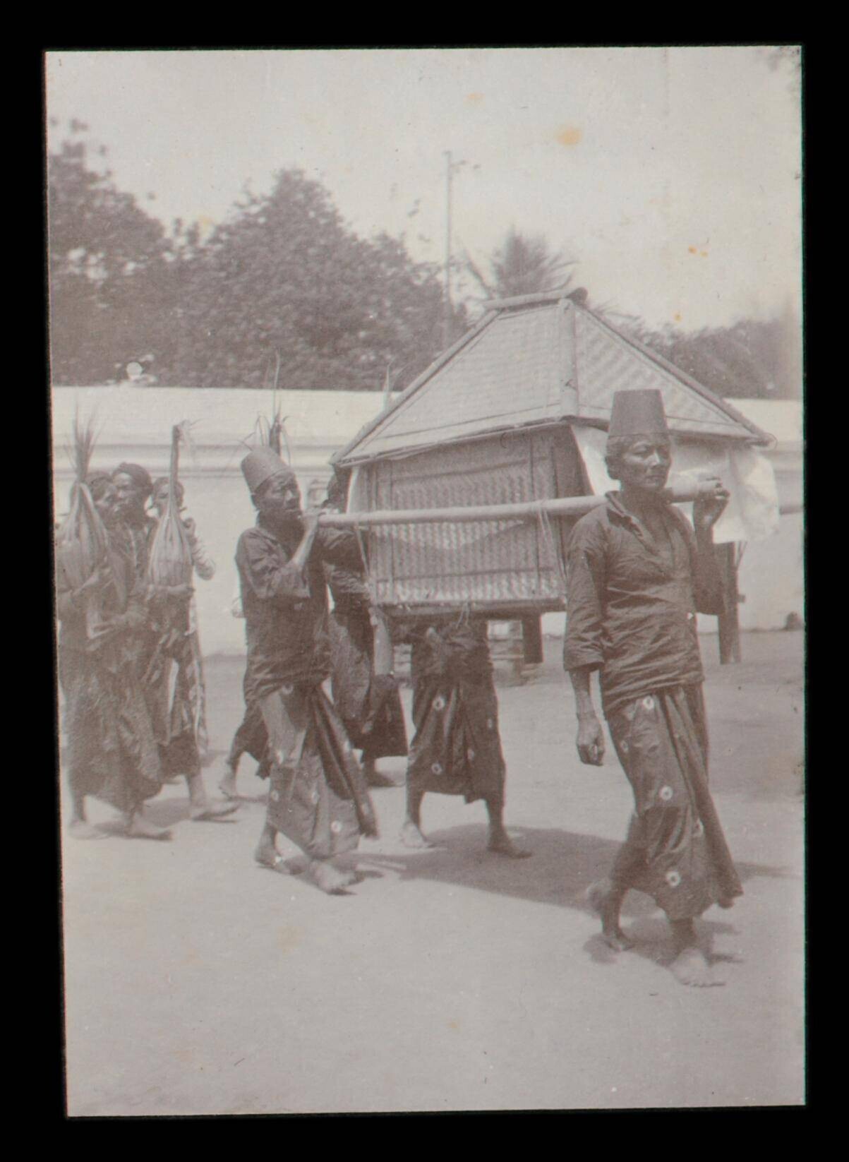 Dragers van een huisvormig object in een optocht