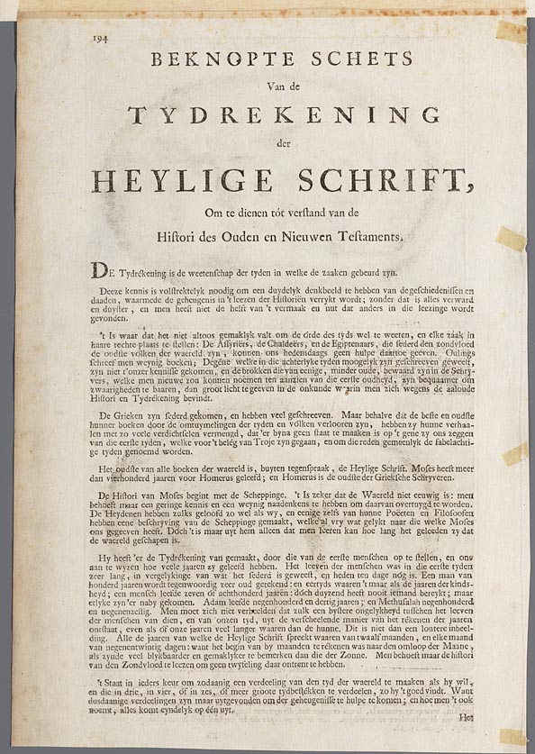 Beknopte schets van de tydrekening der heylige schrift