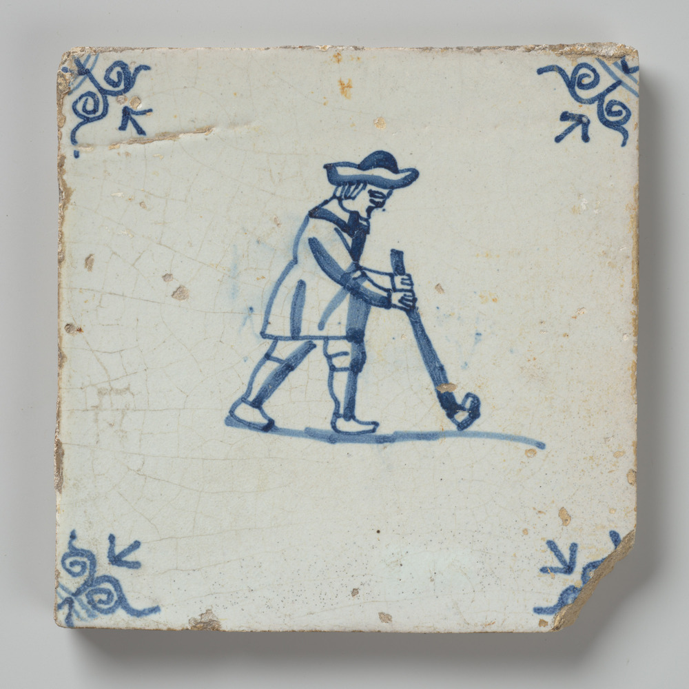 tegel van aardewerk met tinglazuur, voorstellende he...