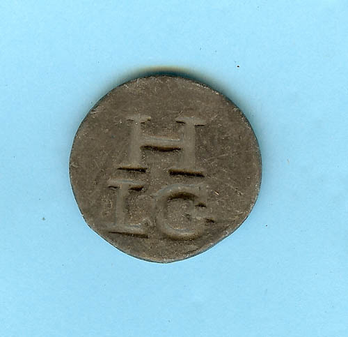 Penning op de voorzijde H L G, mogelijk presentiepen...