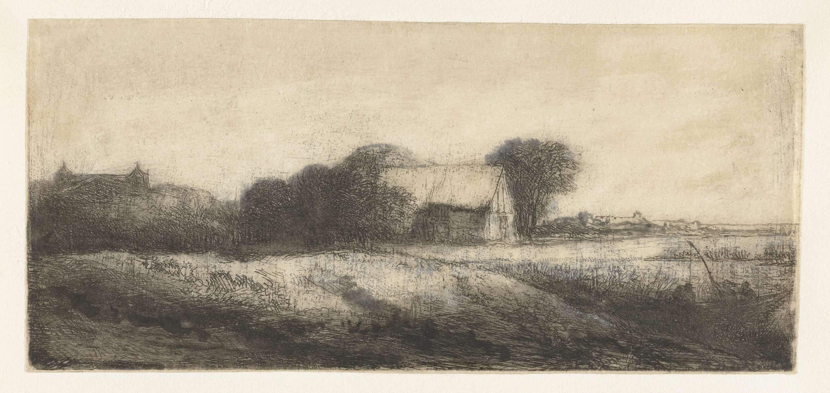 Landschap met een hengelaar in een boot