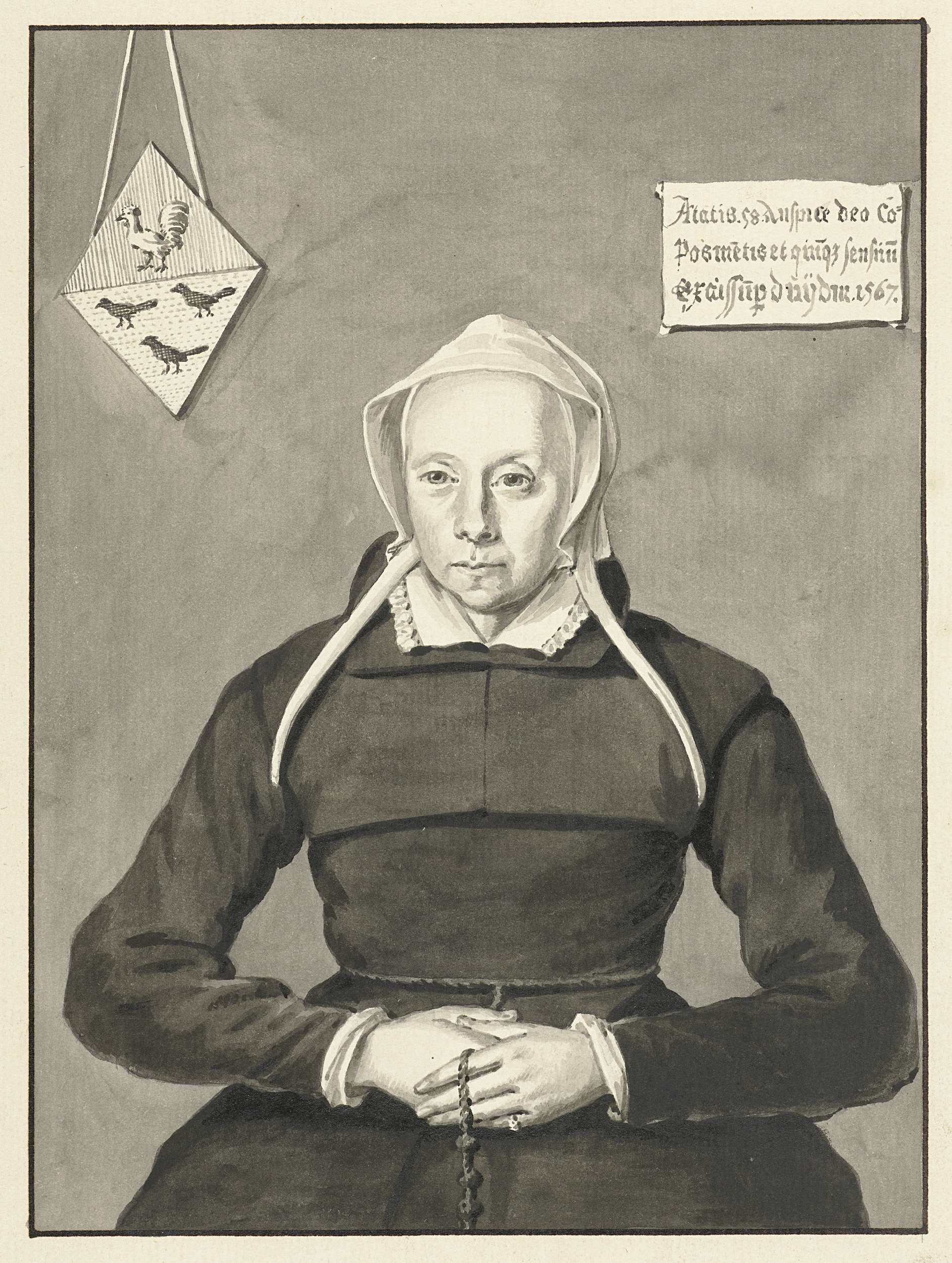 Portret van een vrouw met het wapen Van Slingelandt-...