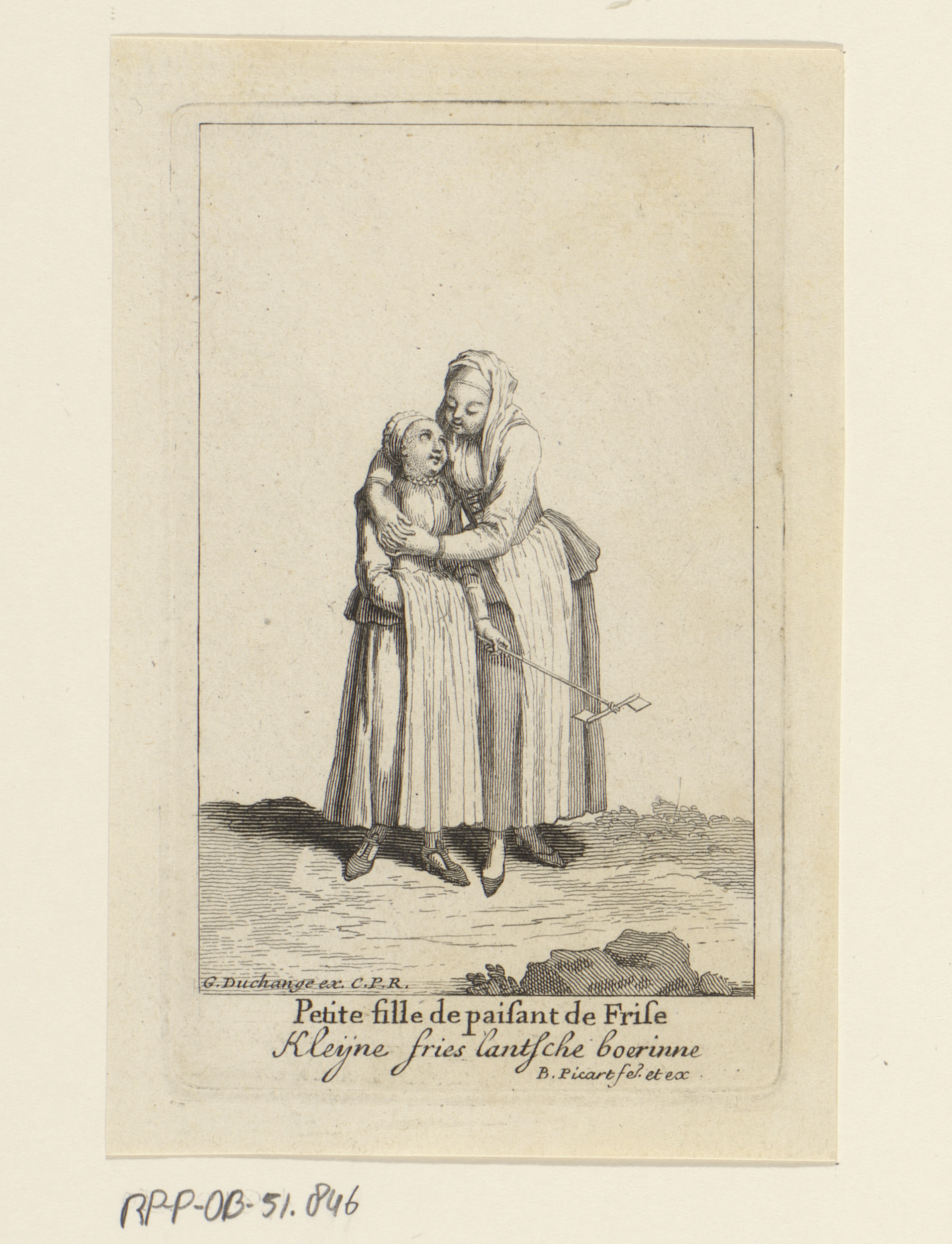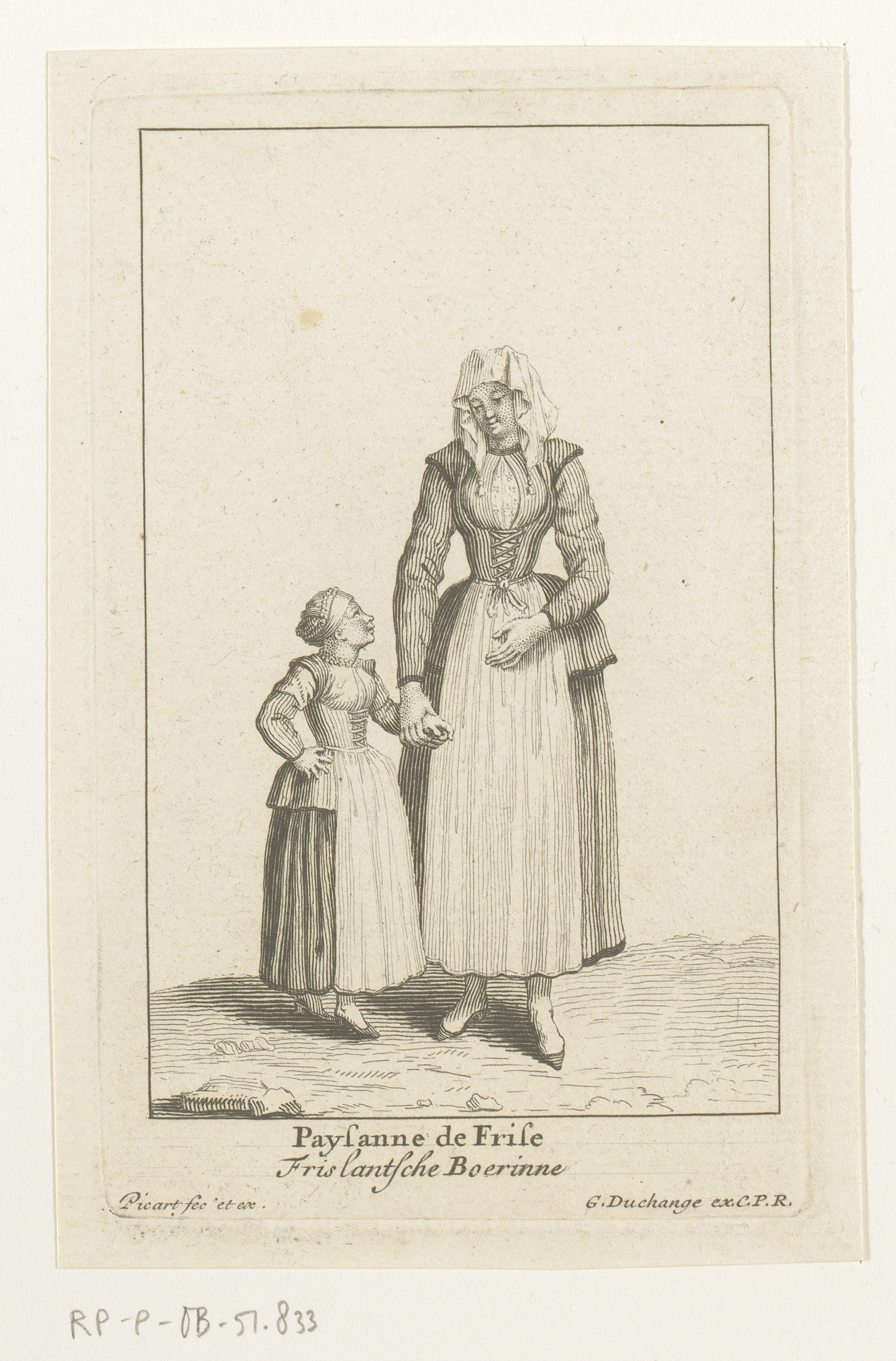 Friese boerin met haar dochter aan de hand