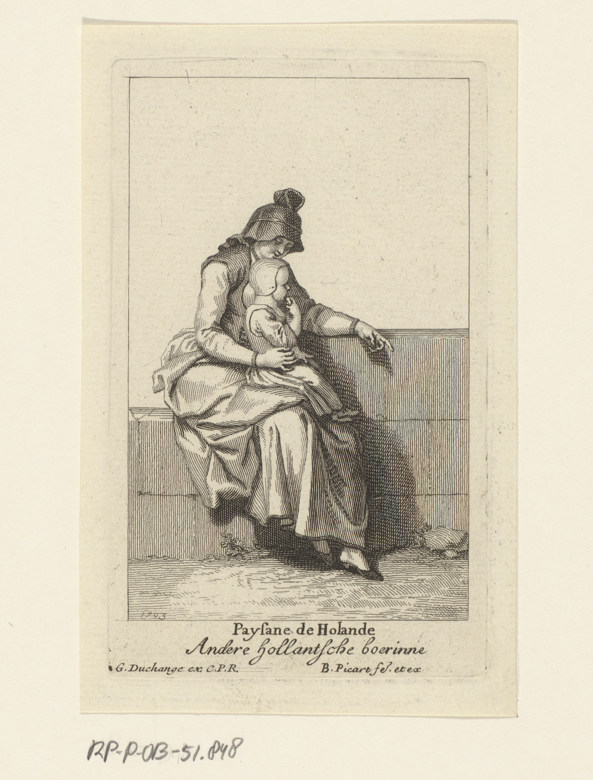 Hollandse boerin met haar kleine kind op schoot