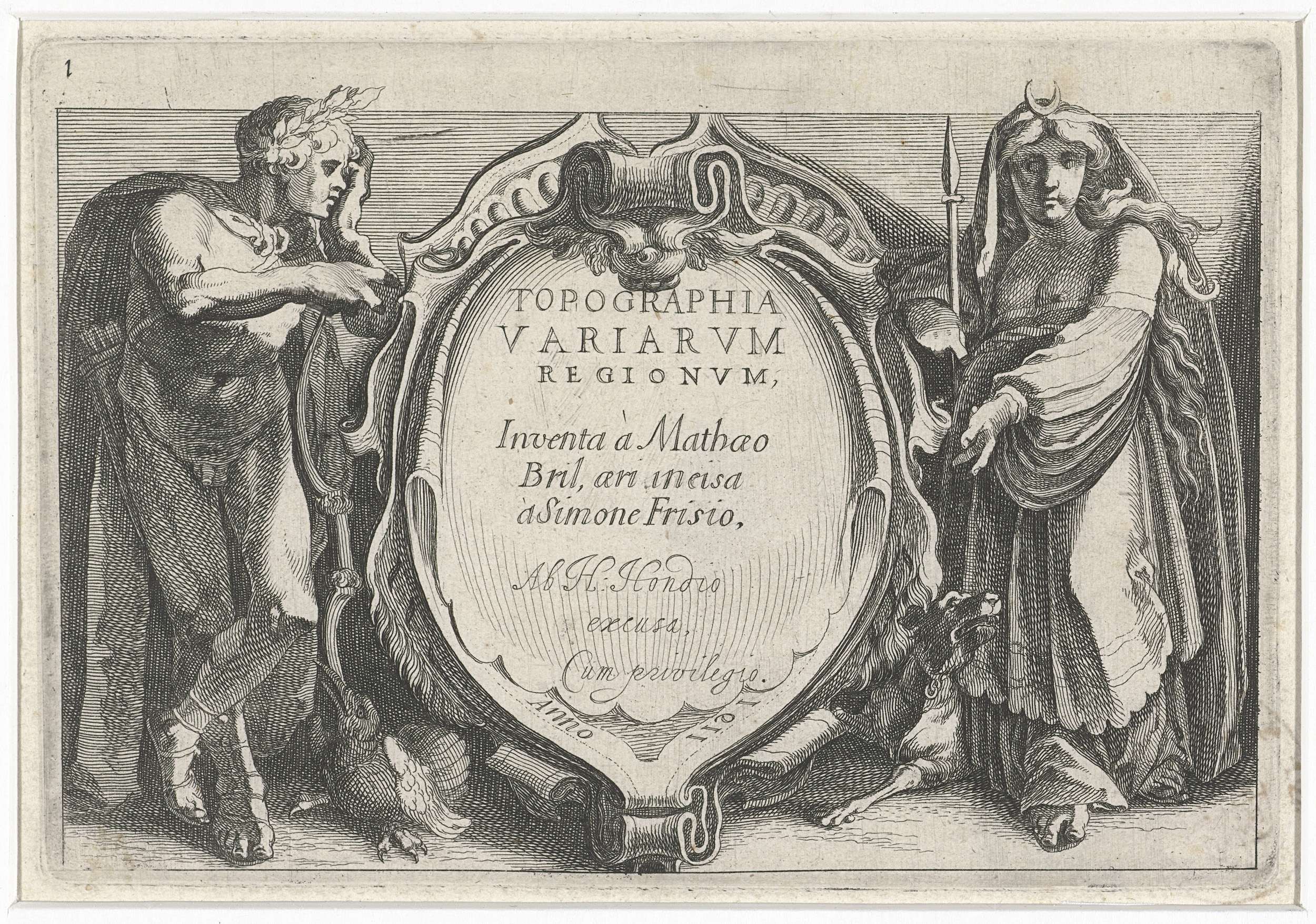 Diana en Apollo aan de weerszijden van een cartouche