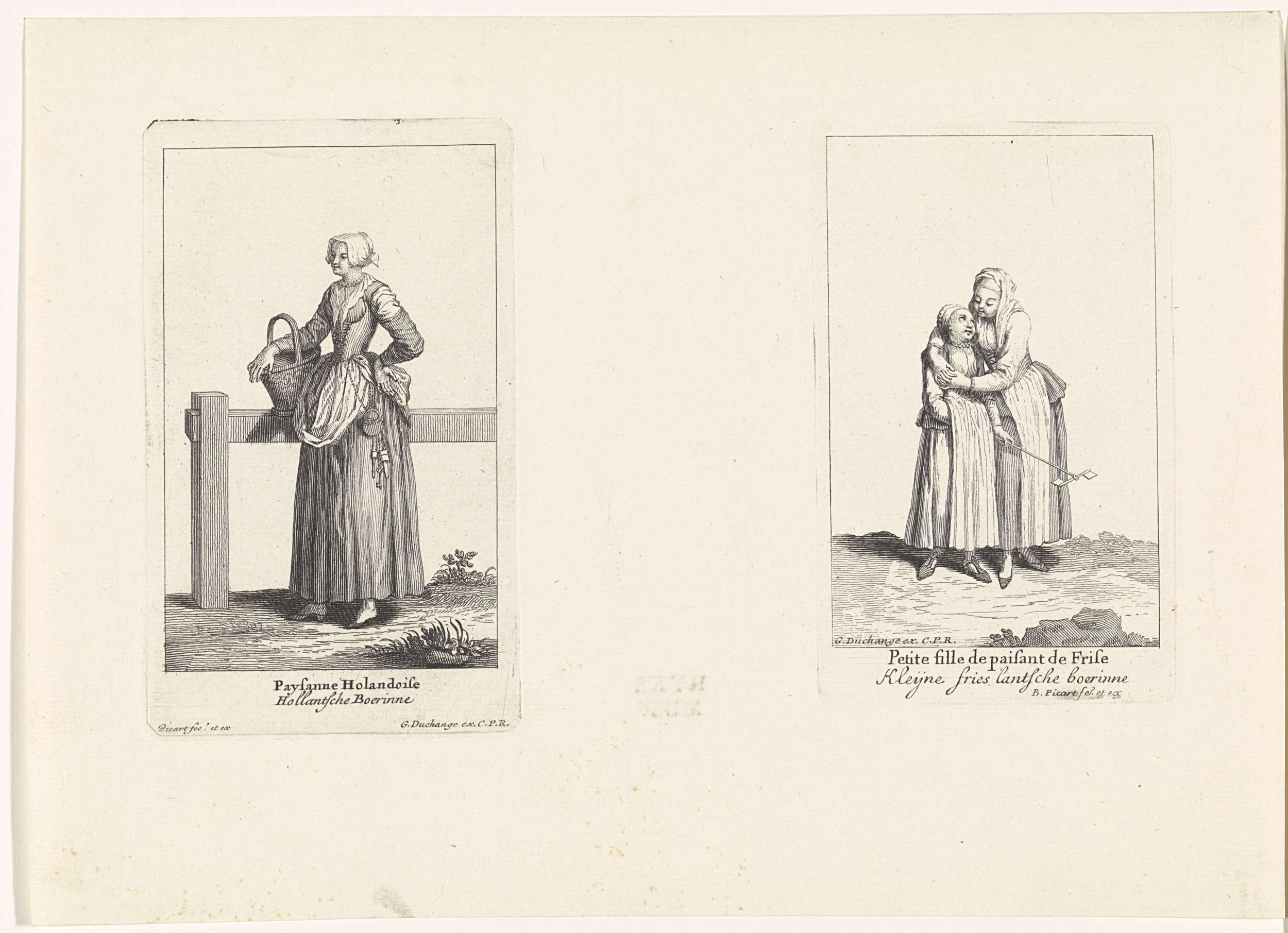 Hollandse boerin en Friese boerin met haar dochter