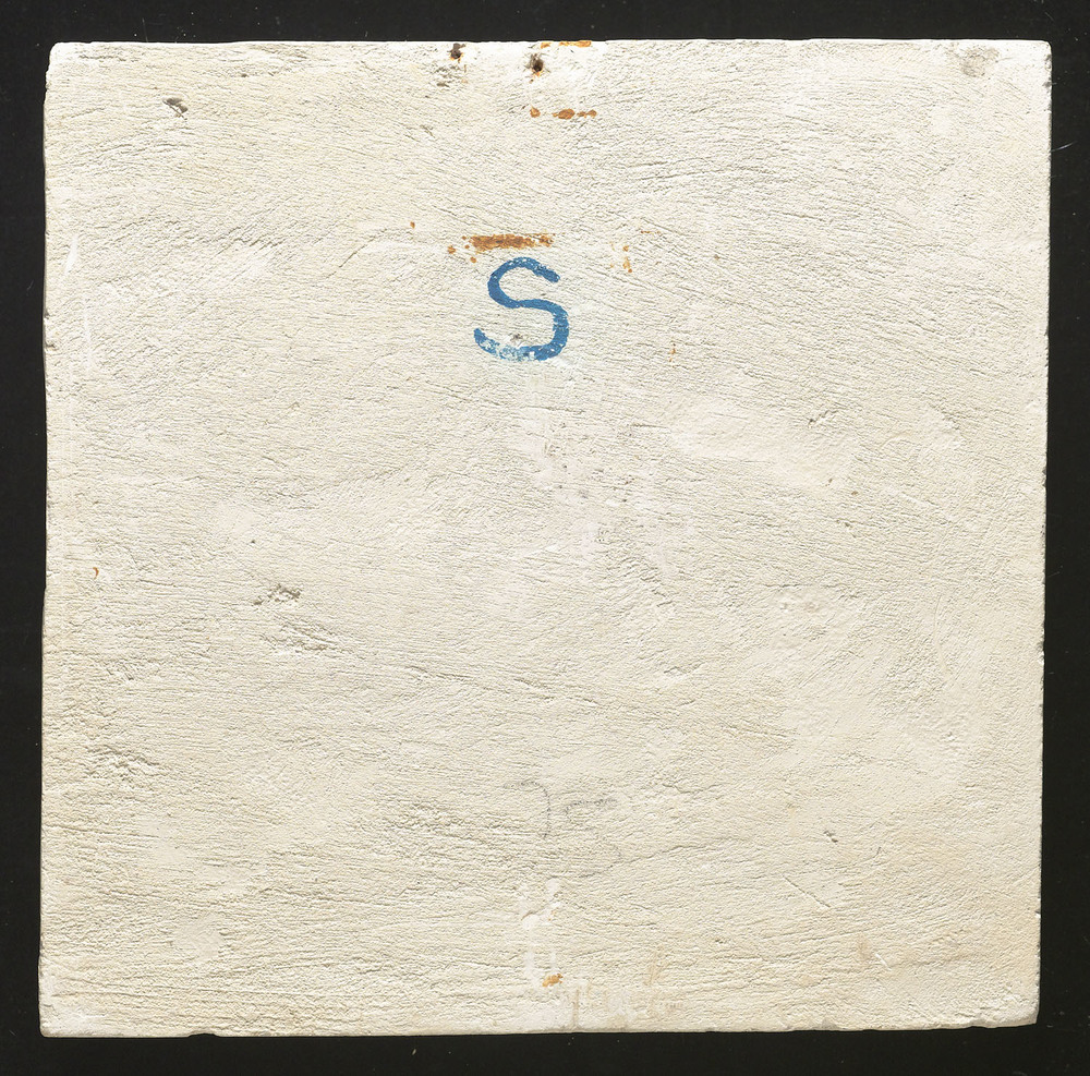 tegel van aardewerk in tinglazuur, voorstellende: la...